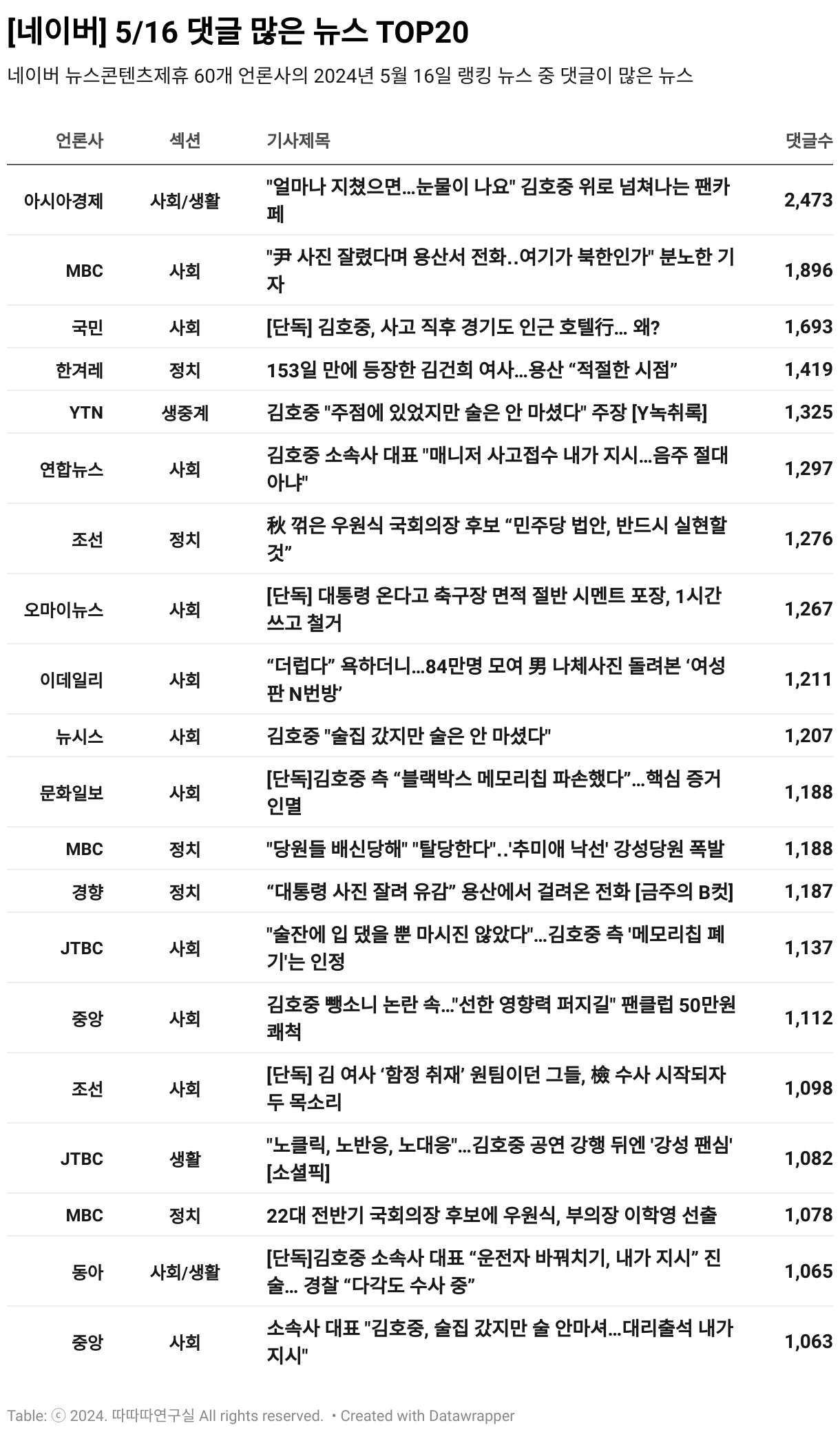 어제 어떤 네이버뉴스 기사가 흥했을까요?