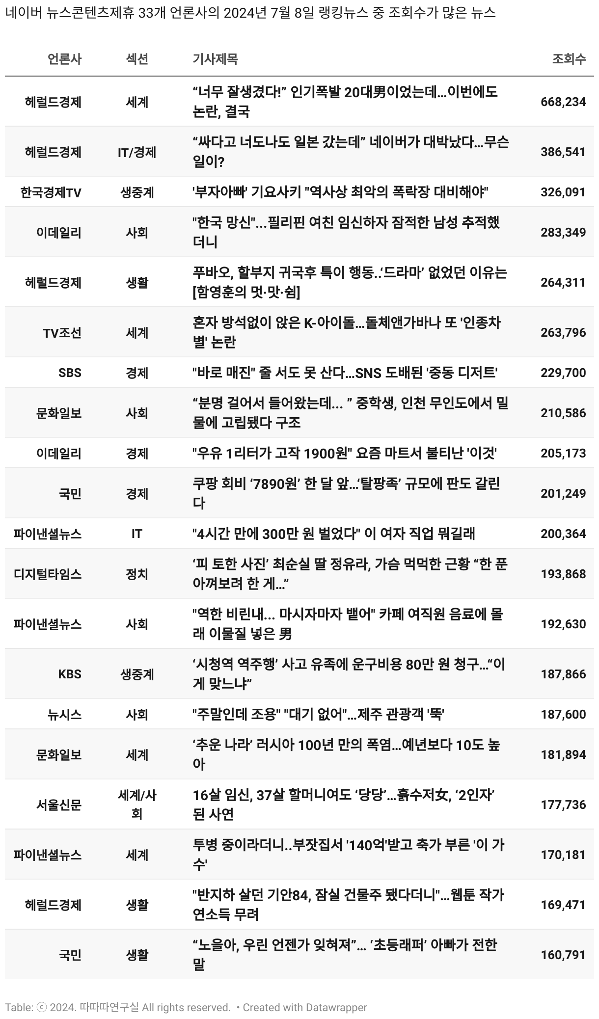일간 흥한 뉴스 - 7월 8일 월요일