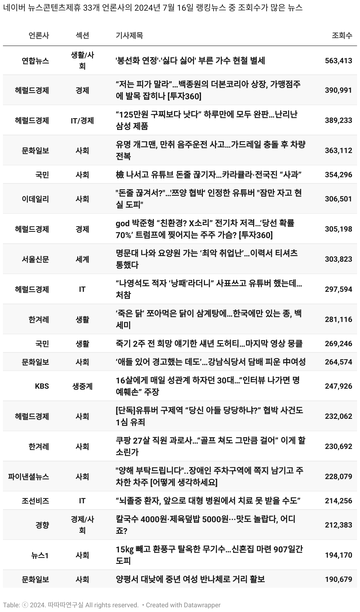 보도 시간대 기준 가장 흥한 기사 3건이 표시됩니다.