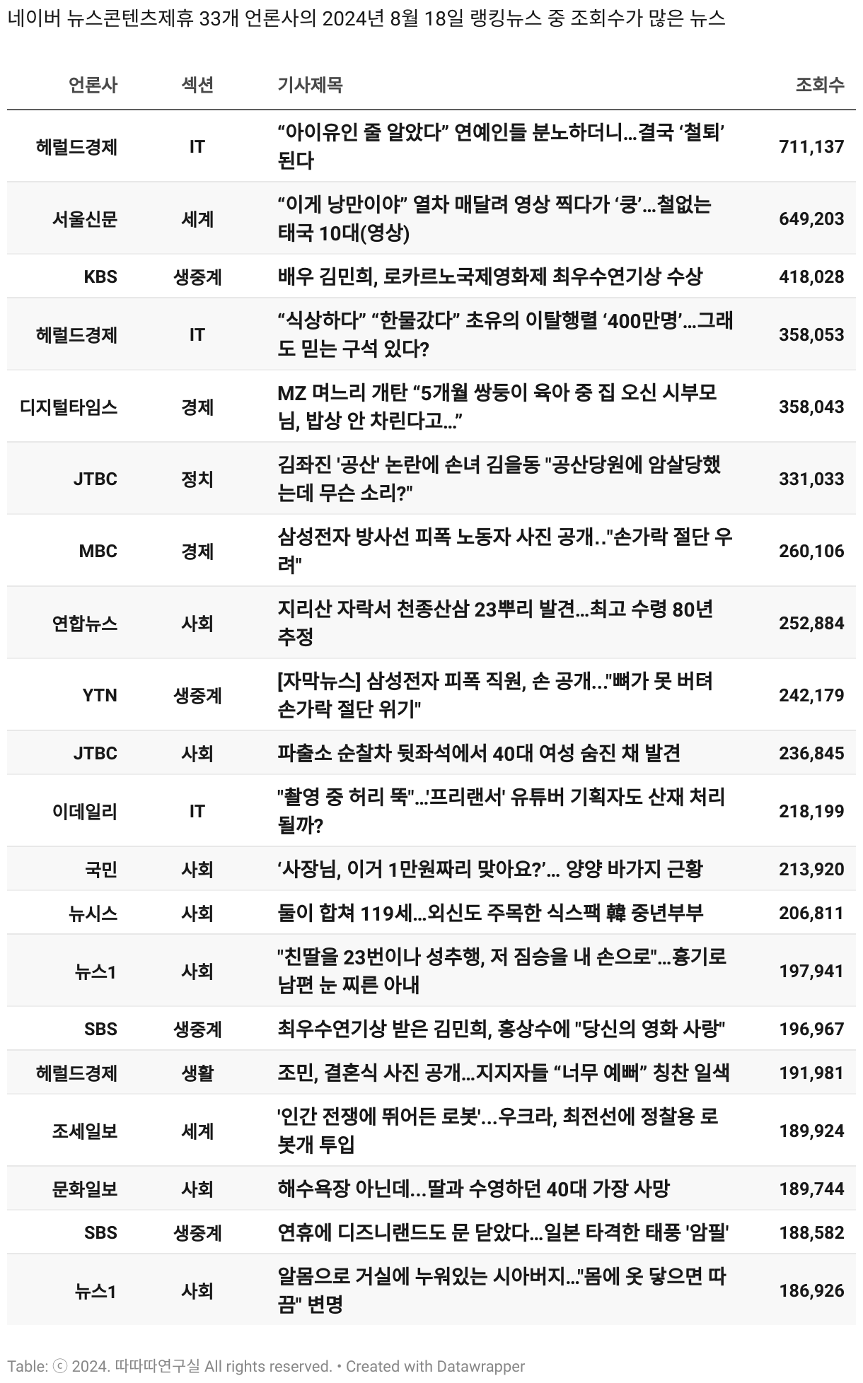 일간 흥한 뉴스 - 8월 18일 일요일