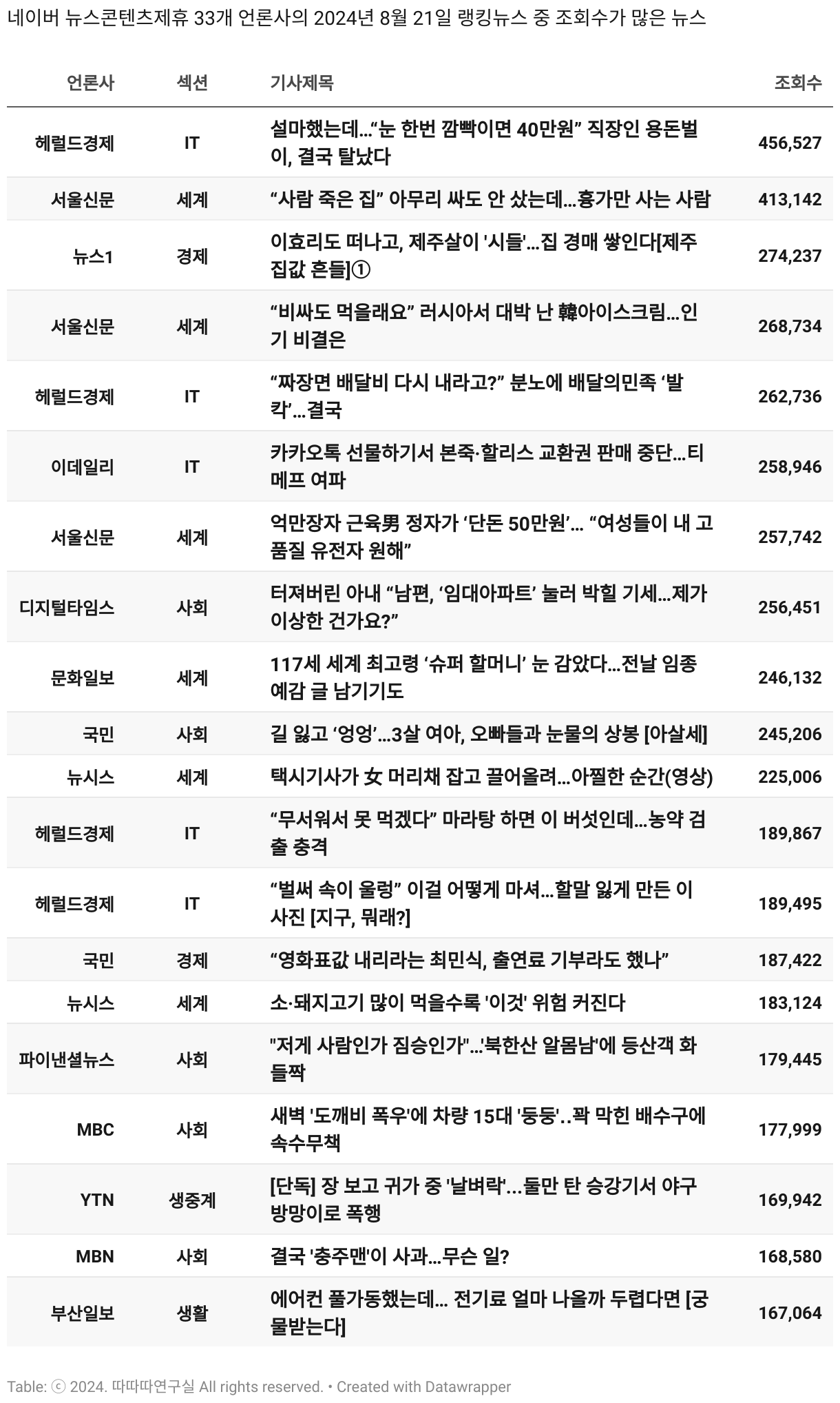보도 시간대 기준 가장 흥한 기사 3건이 표시됩니다.