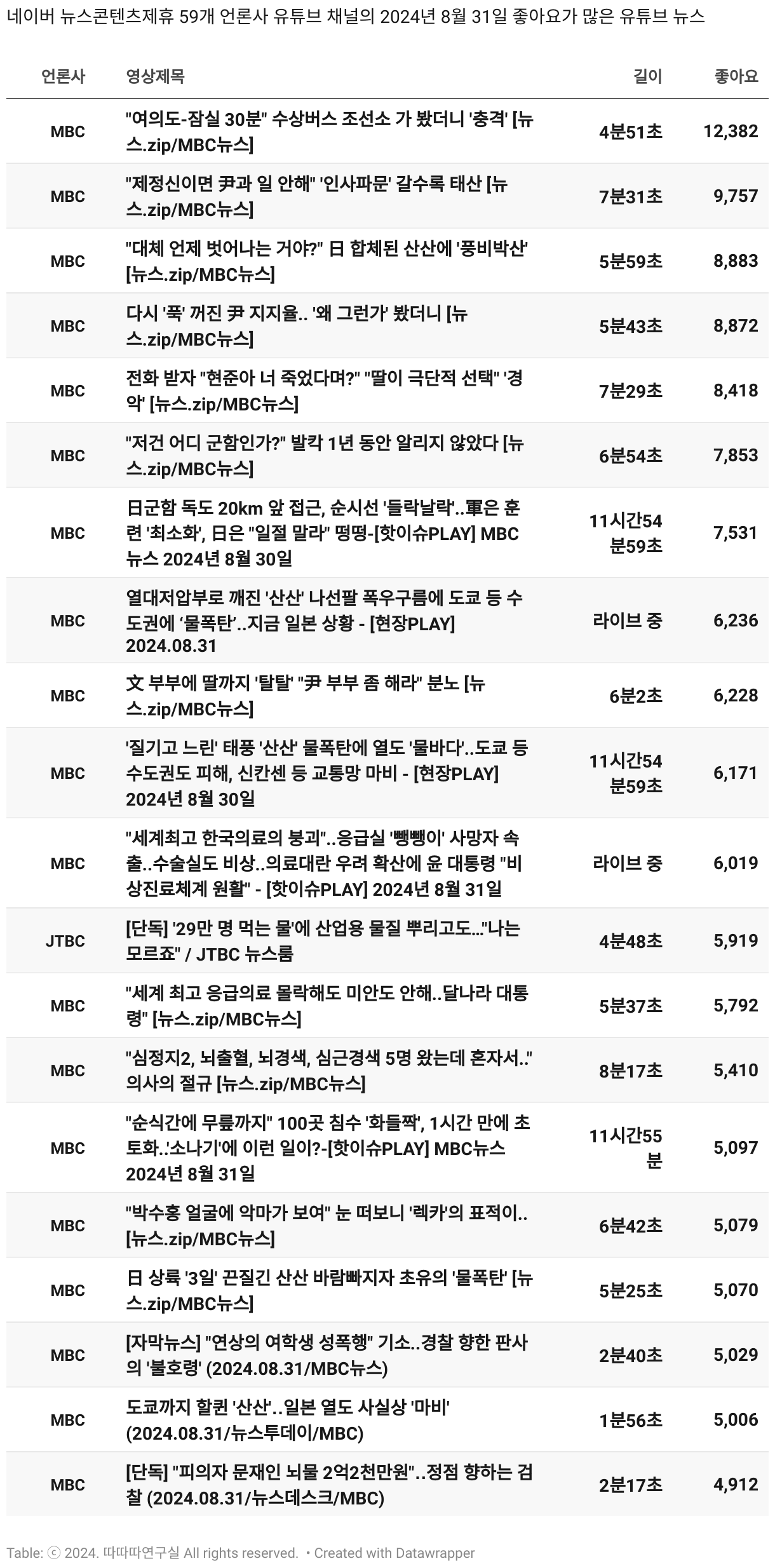 일간 흥한 뉴스 - 8월 31일 토요일