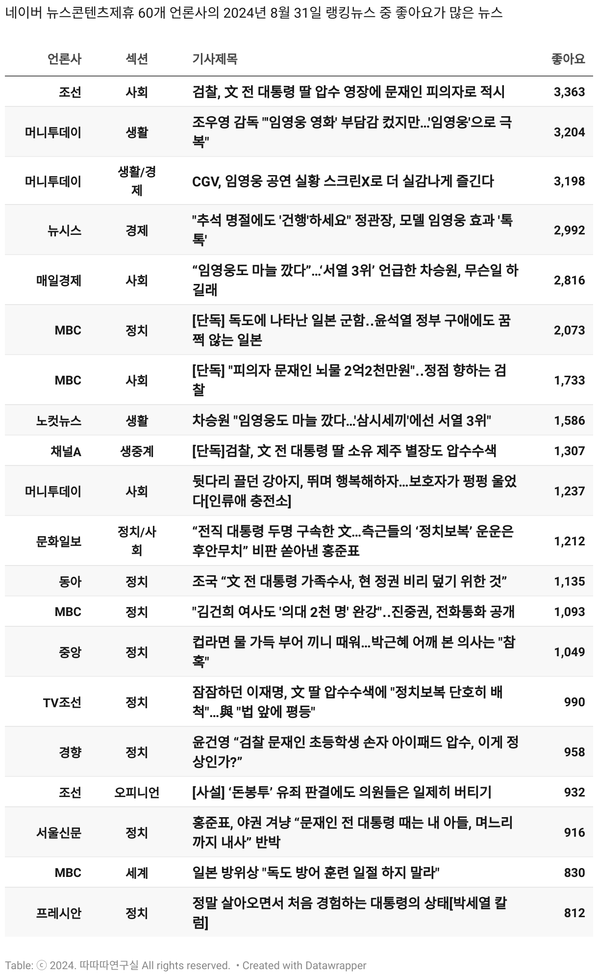 보도 시간대 기준 가장 흥한 기사 3건이 표시됩니다.