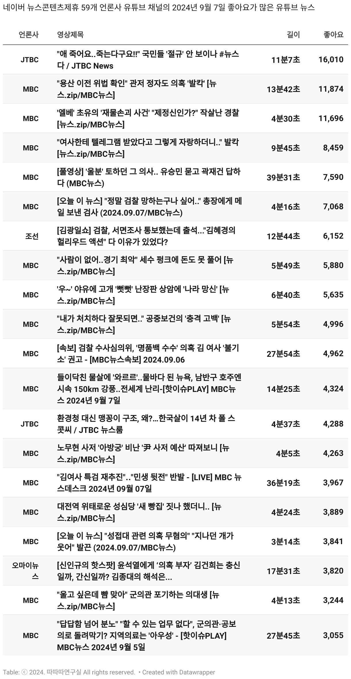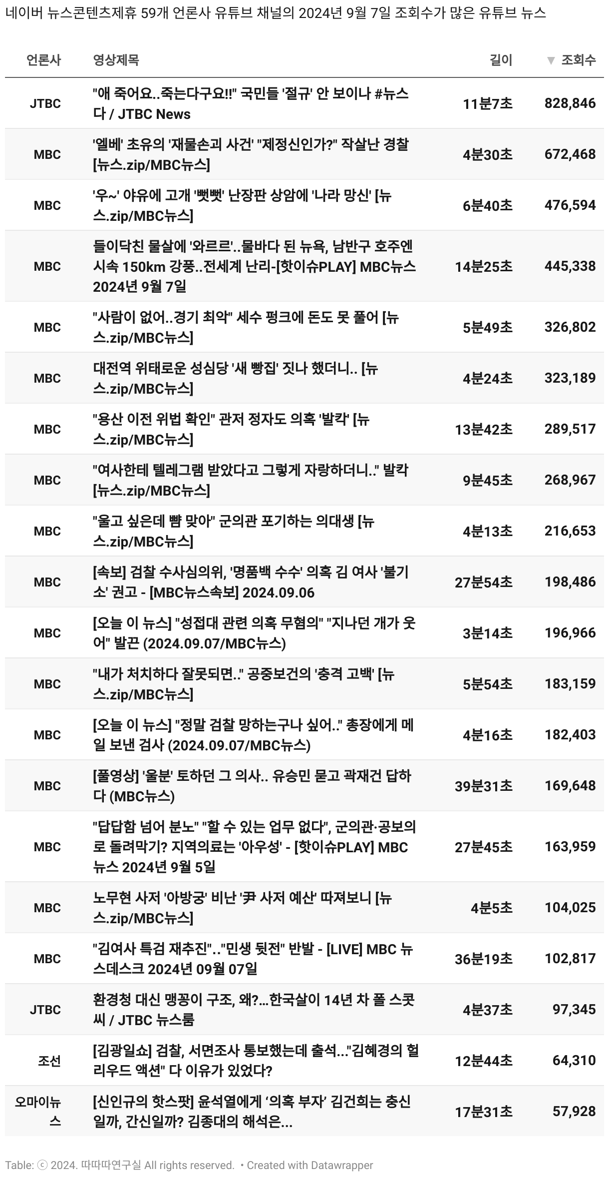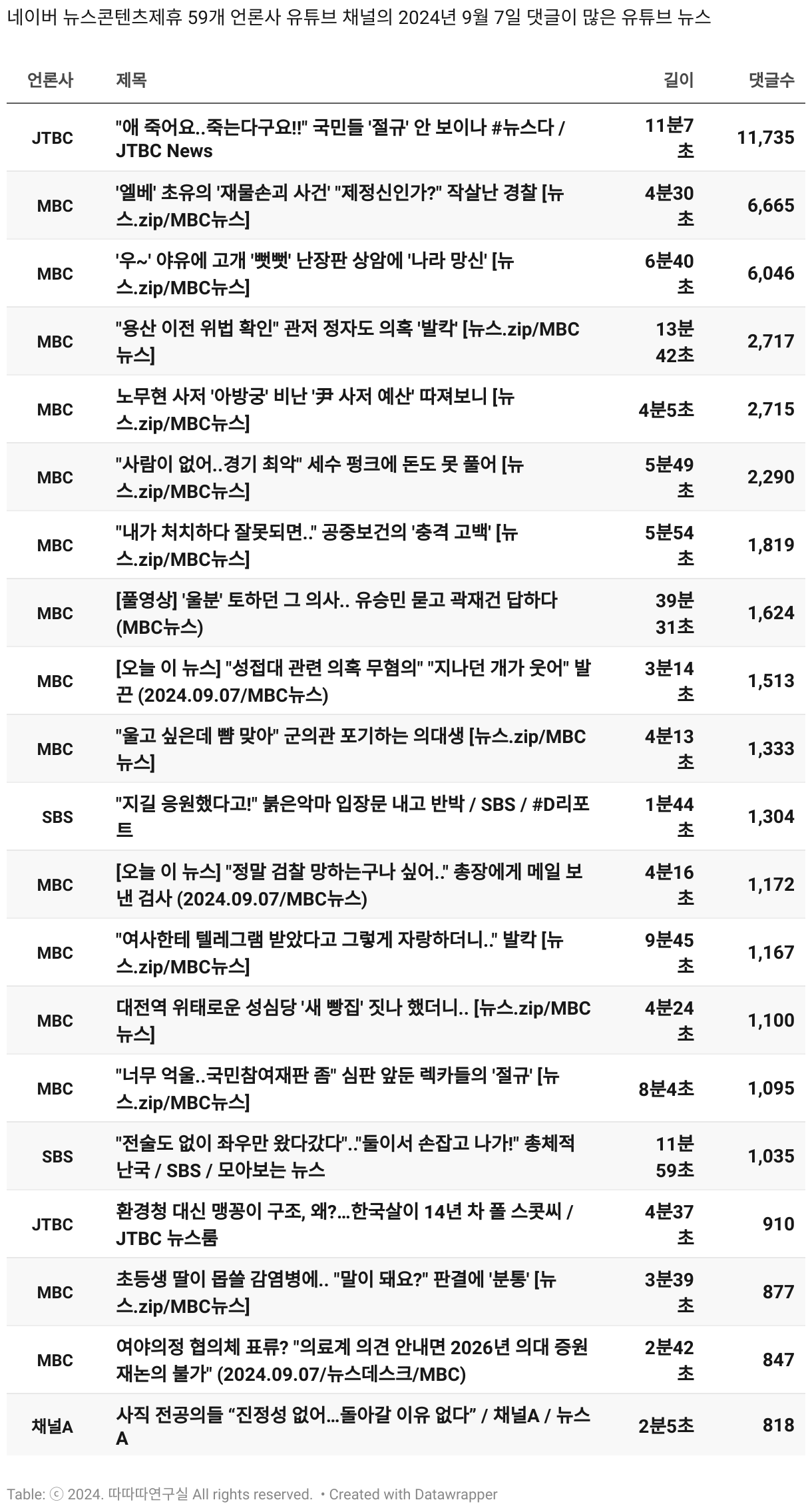 *데이터 수집 기간 : 2024년 6월 10일 *데이터 수집 대상 : 네이버 뉴스콘텐츠제휴 60개 언론사. 종합일간지 10개(경향신문, 국민일보, 동아일보, 문화일보, 서울신문, 세계일보, 조선일보, 중앙일보, 한겨레신문, 한국일보), 방송/통신사 14개(뉴스1, 뉴시스, 연합뉴스, 연합뉴스TV, 채널A, 한국경제TV, JTBC, KBS, MBC, MBN, SBS, SBS BIZ, TV조선, YTN), 경제지 11개(매일경제, 머니투데이, 비즈워치, 서울경제, 아시아경제, 이데일리, 조선비즈, 조세일보, 파이낸셜뉴스, 한국경제(유튜브제외), 헤럴드경제) 인터넷 8개(노컷뉴스, 더팩트, 데일리안, 머니S, 미디어오늘, 아이뉴스24, 오마이뉴스, 프레시안), IT 5개(디지털데일리,디지털타임스, 블로터, 전자신문, 지디넷코리아), 지역 12개(강원도민일보, 강원일보, 경기일보, 국제신문, 대구MBC, 대전일보, 매일신문, 부산일보, 전주MBC, CJB청주방송, JIBS, kbc광주방송)