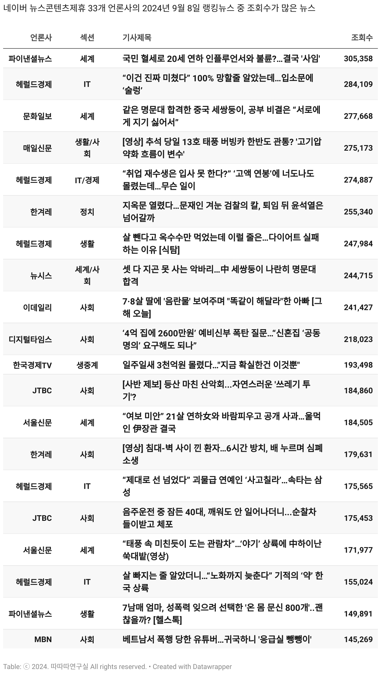 보도 시간대 기준 가장 흥한 기사 3건이 표시됩니다.