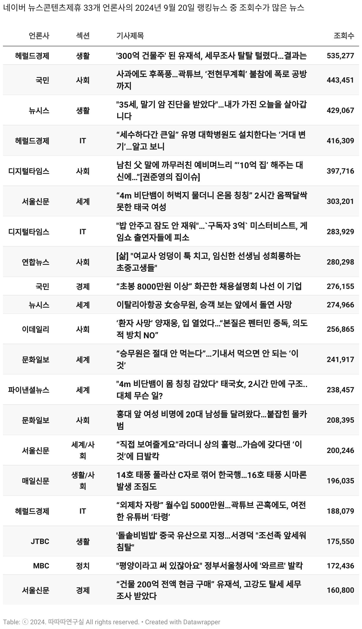 보도 시간대 기준 가장 흥한 기사 3건이 표시됩니다.
