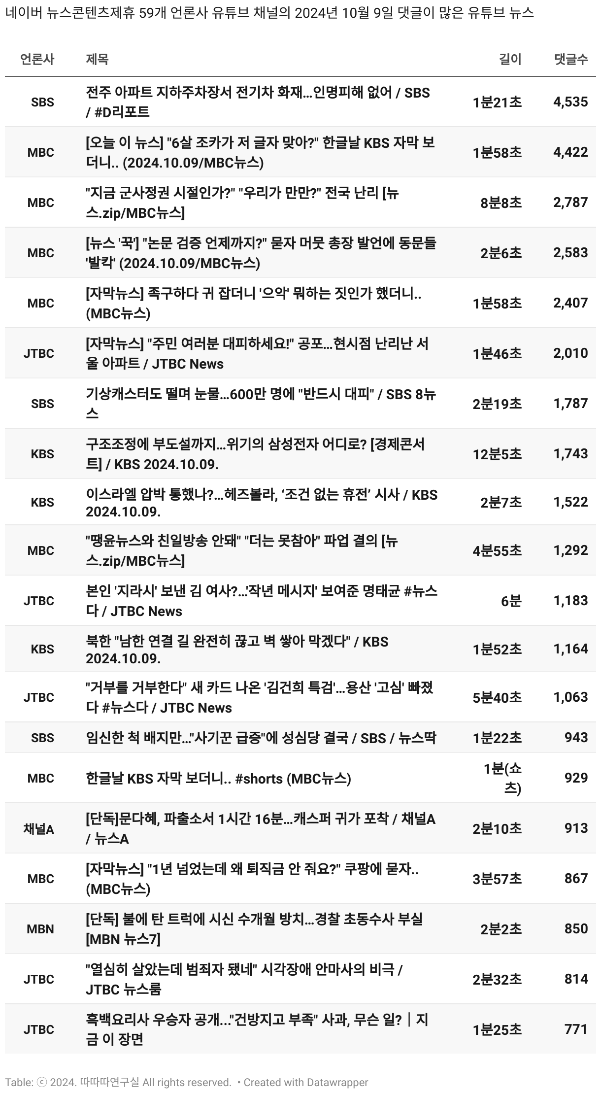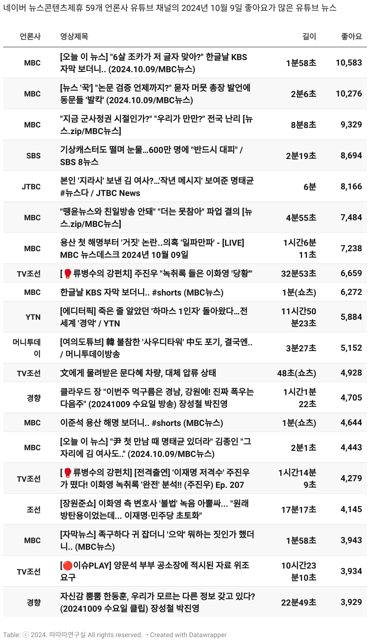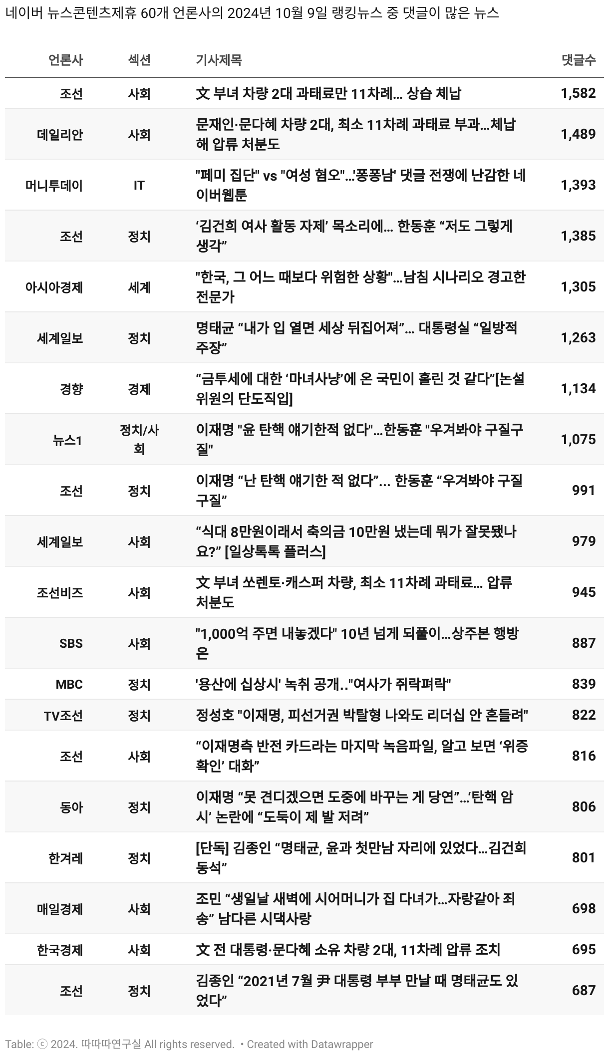 *데이터 수집 기간 : 2024년 6월 10일 *데이터 수집 대상 : 네이버 뉴스콘텐츠제휴 60개 언론사. 종합일간지 10개(경향신문, 국민일보, 동아일보, 문화일보, 서울신문, 세계일보, 조선일보, 중앙일보, 한겨레신문, 한국일보), 방송/통신사 14개(뉴스1, 뉴시스, 연합뉴스, 연합뉴스TV, 채널A, 한국경제TV, JTBC, KBS, MBC, MBN, SBS, SBS BIZ, TV조선, YTN), 경제지 11개(매일경제, 머니투데이, 비즈워치, 서울경제, 아시아경제, 이데일리, 조선비즈, 조세일보, 파이낸셜뉴스, 한국경제(유튜브제외), 헤럴드경제) 인터넷 8개(노컷뉴스, 더팩트, 데일리안, 머니S, 미디어오늘, 아이뉴스24, 오마이뉴스, 프레시안), IT 5개(디지털데일리,디지털타임스, 블로터, 전자신문, 지디넷코리아), 지역 12개(강원도민일보, 강원일보, 경기일보, 국제신문, 대구MBC, 대전일보, 매일신문, 부산일보, 전주MBC, CJB청주방송, JIBS, kbc광주방송)