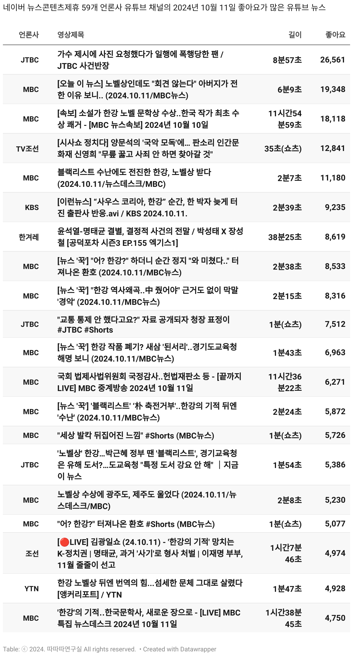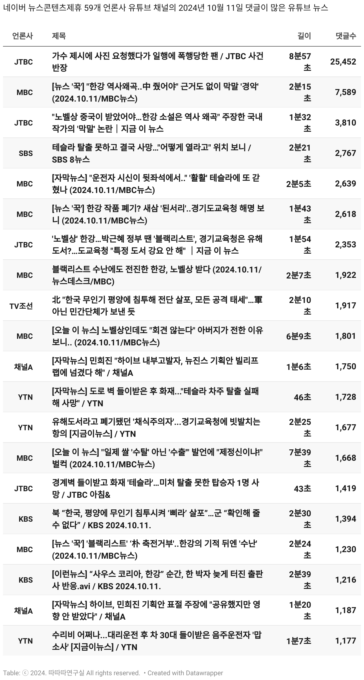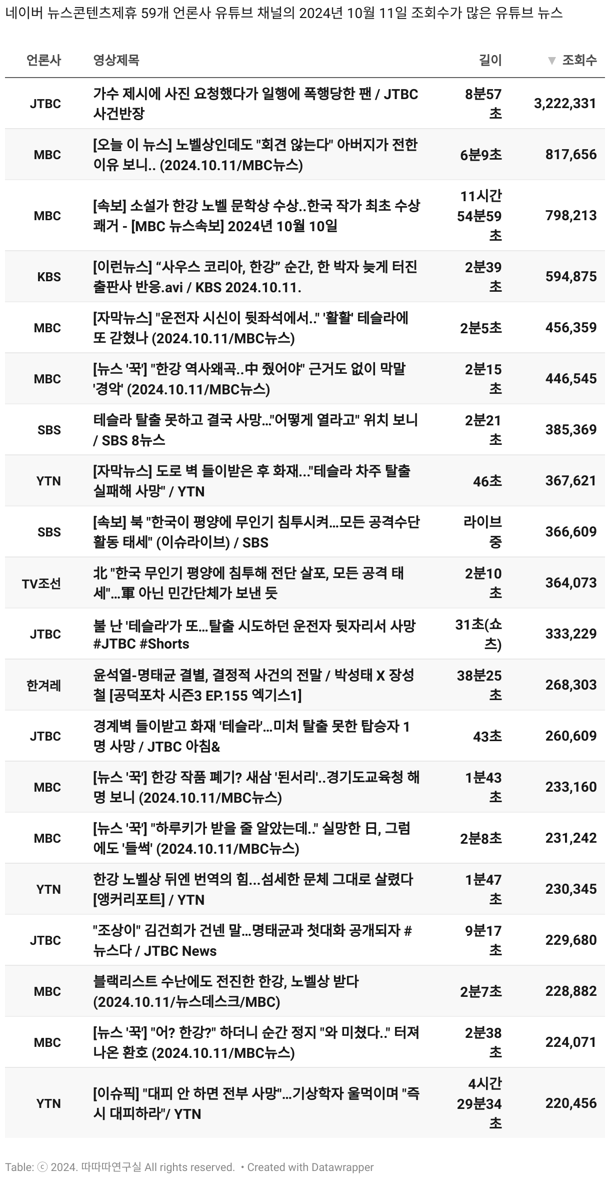 *데이터 수집 기간 : 2024년 6월 10일 *데이터 수집 대상 : 네이버 뉴스콘텐츠제휴 60개 언론사. 종합일간지 10개(경향신문, 국민일보, 동아일보, 문화일보, 서울신문, 세계일보, 조선일보, 중앙일보, 한겨레신문, 한국일보), 방송/통신사 14개(뉴스1, 뉴시스, 연합뉴스, 연합뉴스TV, 채널A, 한국경제TV, JTBC, KBS, MBC, MBN, SBS, SBS BIZ, TV조선, YTN), 경제지 11개(매일경제, 머니투데이, 비즈워치, 서울경제, 아시아경제, 이데일리, 조선비즈, 조세일보, 파이낸셜뉴스, 한국경제(유튜브제외), 헤럴드경제) 인터넷 8개(노컷뉴스, 더팩트, 데일리안, 머니S, 미디어오늘, 아이뉴스24, 오마이뉴스, 프레시안), IT 5개(디지털데일리,디지털타임스, 블로터, 전자신문, 지디넷코리아), 지역 12개(강원도민일보, 강원일보, 경기일보, 국제신문, 대구MBC, 대전일보, 매일신문, 부산일보, 전주MBC, CJB청주방송, JIBS, kbc광주방송)