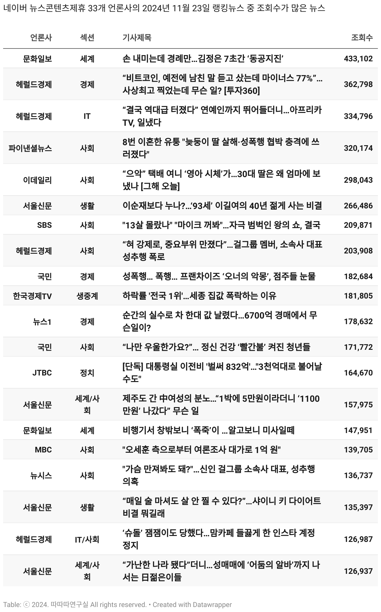 보도 시간대 기준 가장 흥한 기사 3건이 표시됩니다.