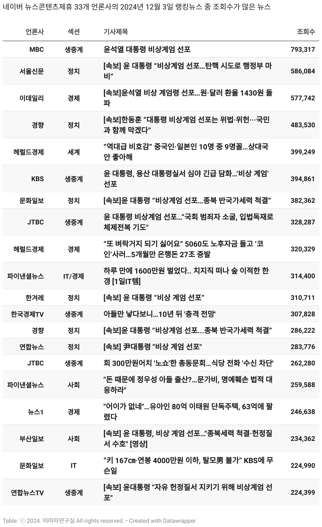 보도 시간대 기준 가장 흥한 기사 3건이 표시됩니다.