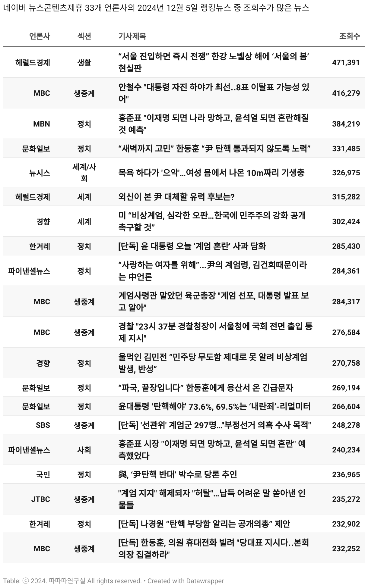 보도 시간대 기준 가장 흥한 기사 3건이 표시됩니다.