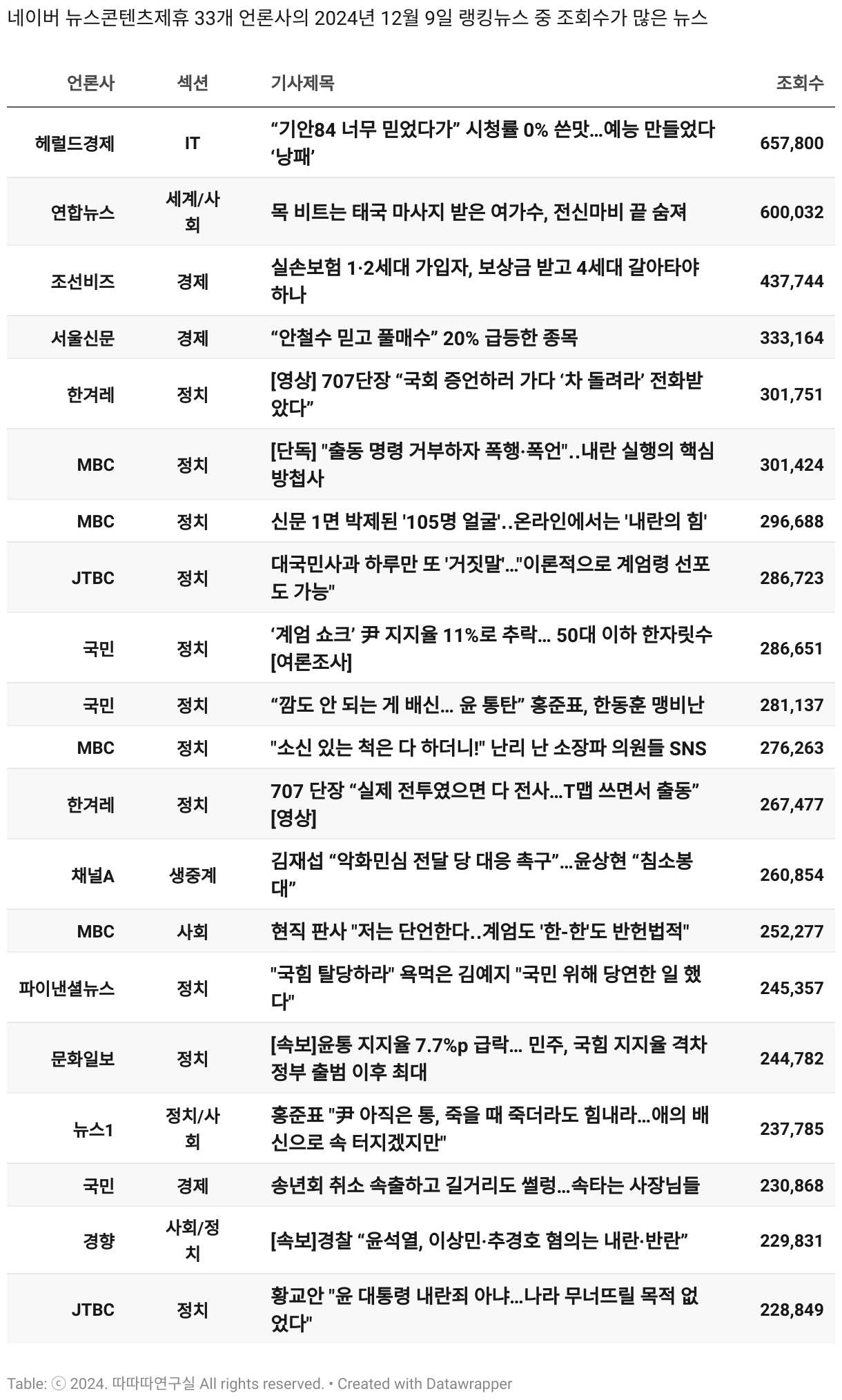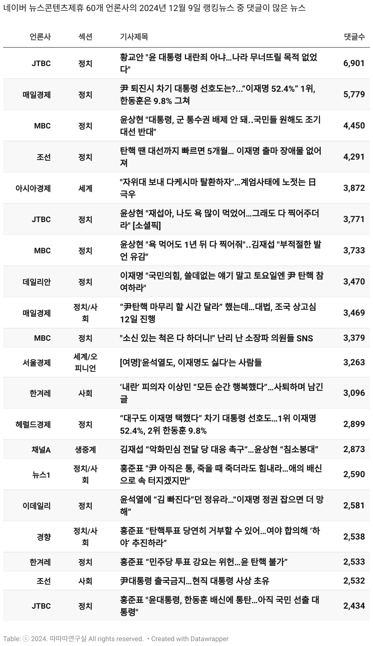 보도 시간대 기준 가장 흥한 기사 3건이 표시됩니다.