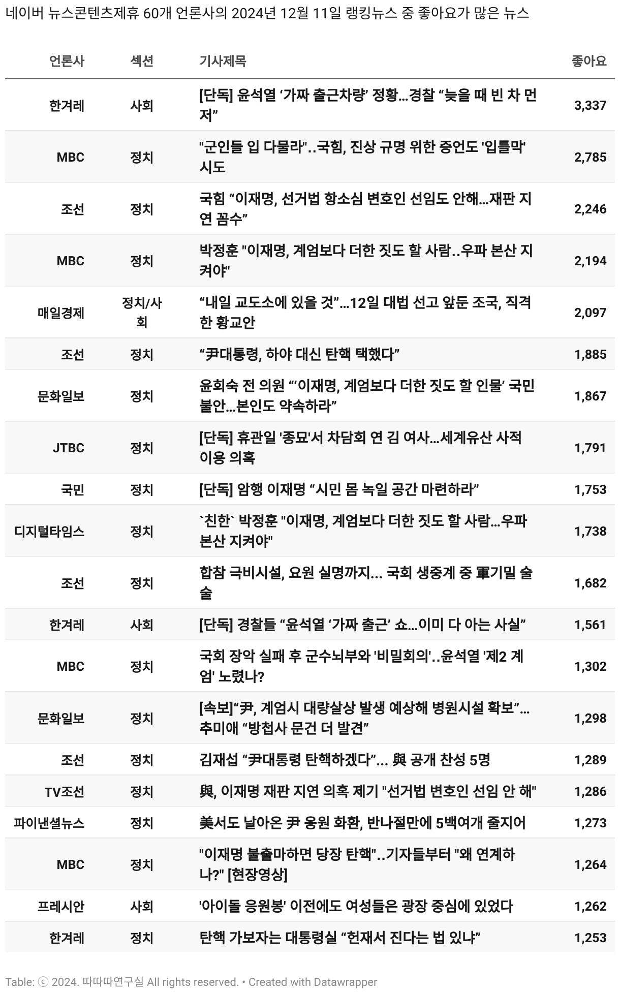 보도 시간대 기준 가장 흥한 기사 3건이 표시됩니다.