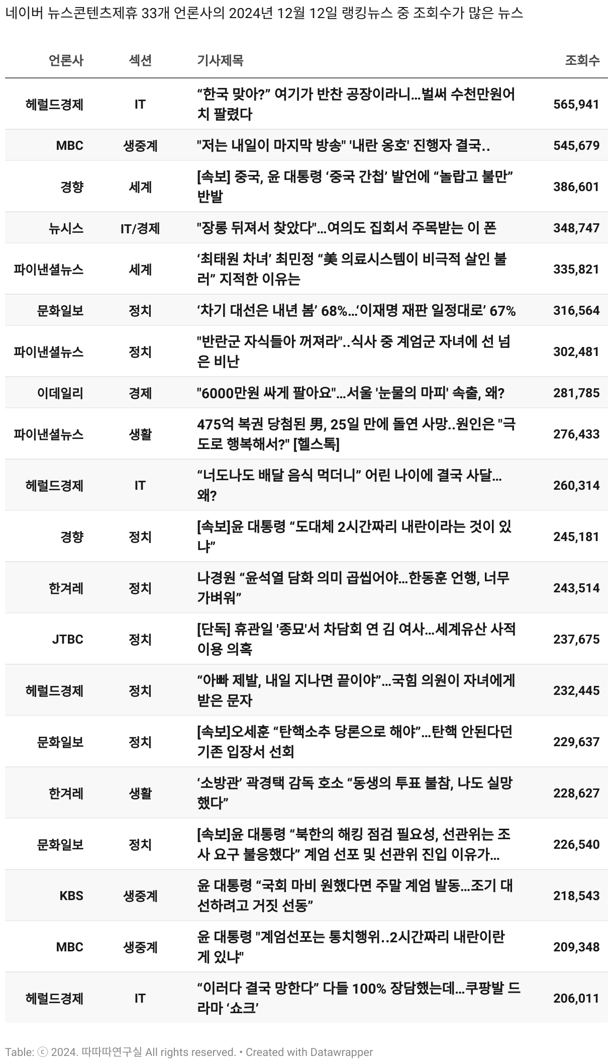 보도 시간대 기준 가장 흥한 기사 3건이 표시됩니다.