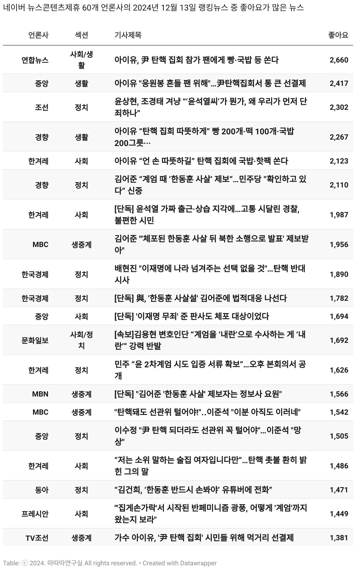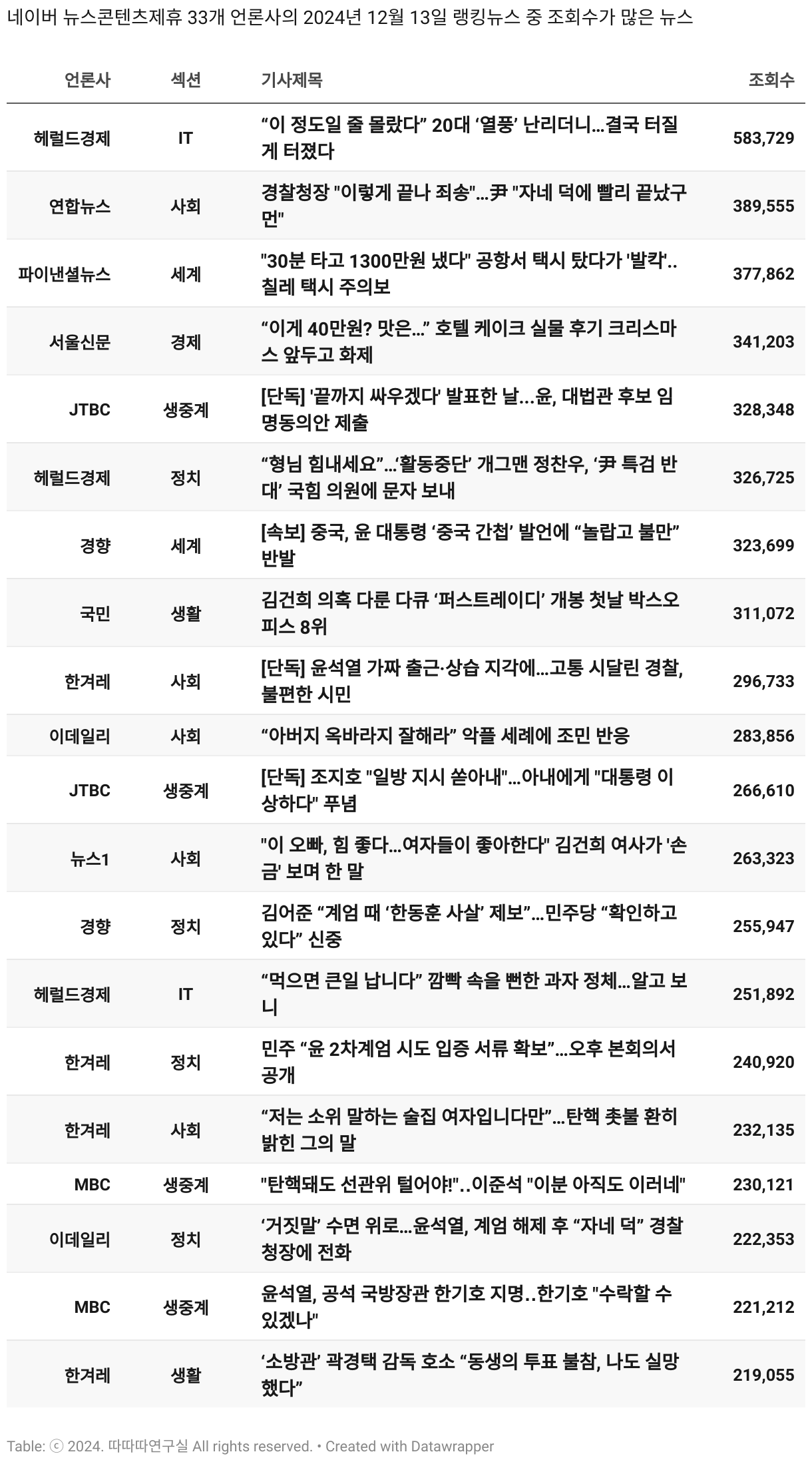 보도 시간대 기준 가장 흥한 기사 3건이 표시됩니다.