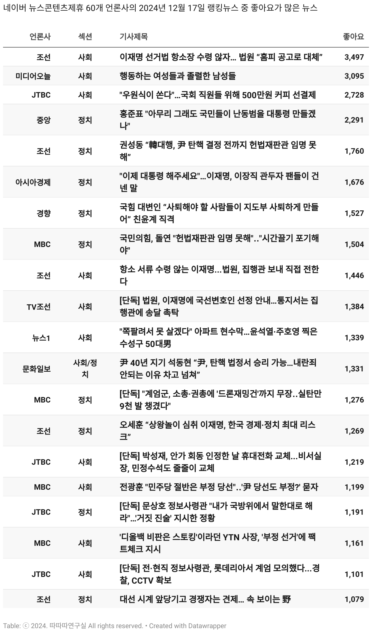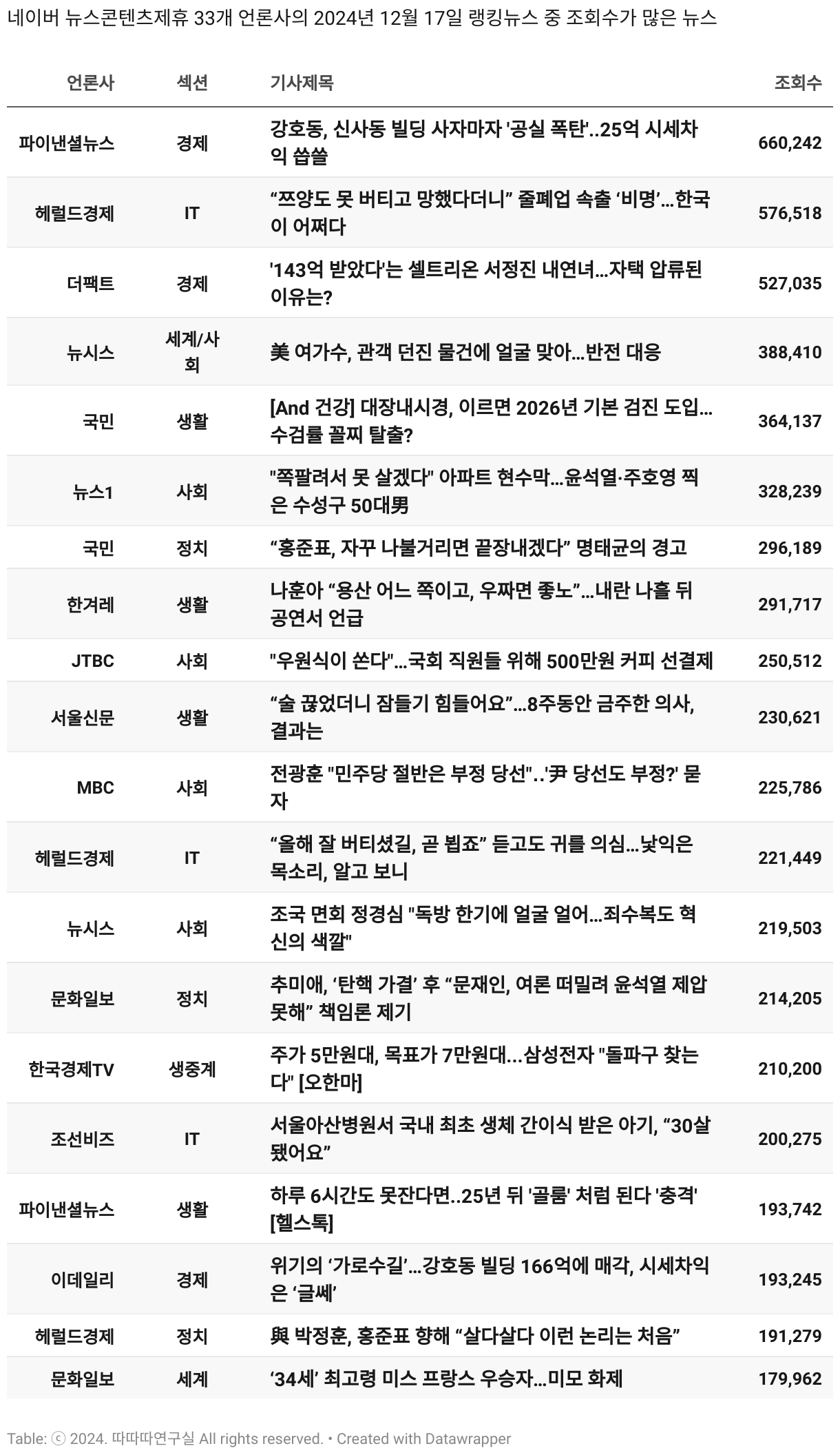 보도 시간대 기준 가장 흥한 기사 3건이 표시됩니다.
