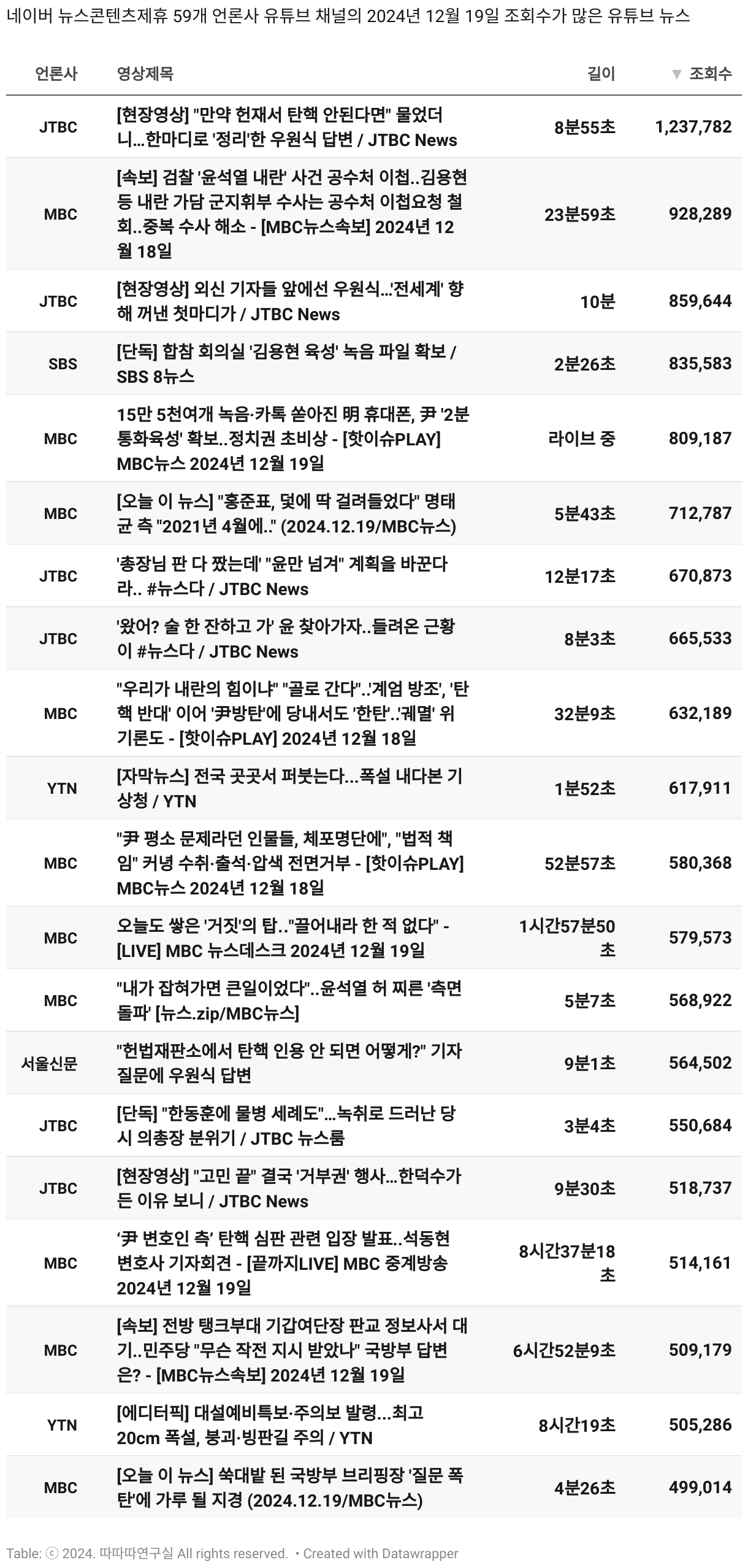 *데이터 수집 기간 : 2024년 6월 10일 *데이터 수집 대상 : 네이버 뉴스콘텐츠제휴 60개 언론사. 종합일간지 10개(경향신문, 국민일보, 동아일보, 문화일보, 서울신문, 세계일보, 조선일보, 중앙일보, 한겨레신문, 한국일보), 방송/통신사 14개(뉴스1, 뉴시스, 연합뉴스, 연합뉴스TV, 채널A, 한국경제TV, JTBC, KBS, MBC, MBN, SBS, SBS BIZ, TV조선, YTN), 경제지 11개(매일경제, 머니투데이, 비즈워치, 서울경제, 아시아경제, 이데일리, 조선비즈, 조세일보, 파이낸셜뉴스, 한국경제(유튜브제외), 헤럴드경제) 인터넷 8개(노컷뉴스, 더팩트, 데일리안, 머니S, 미디어오늘, 아이뉴스24, 오마이뉴스, 프레시안), IT 5개(디지털데일리,디지털타임스, 블로터, 전자신문, 지디넷코리아), 지역 12개(강원도민일보, 강원일보, 경기일보, 국제신문, 대구MBC, 대전일보, 매일신문, 부산일보, 전주MBC, CJB청주방송, JIBS, kbc광주방송)