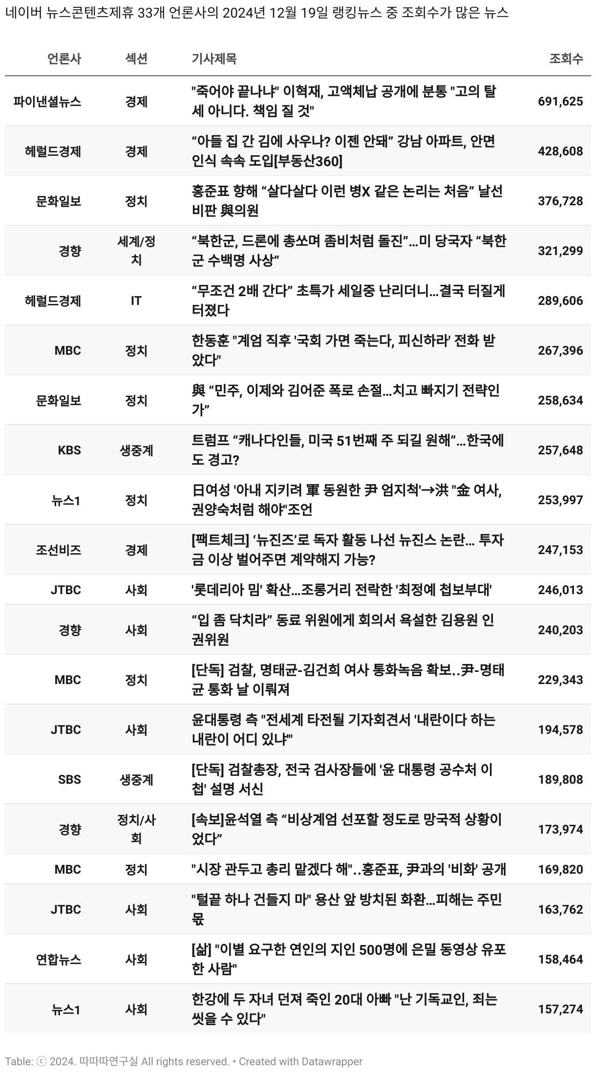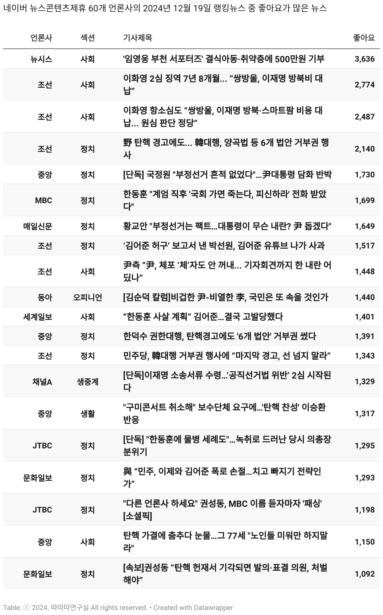 보도 시간대 기준 가장 흥한 기사 3건이 표시됩니다.