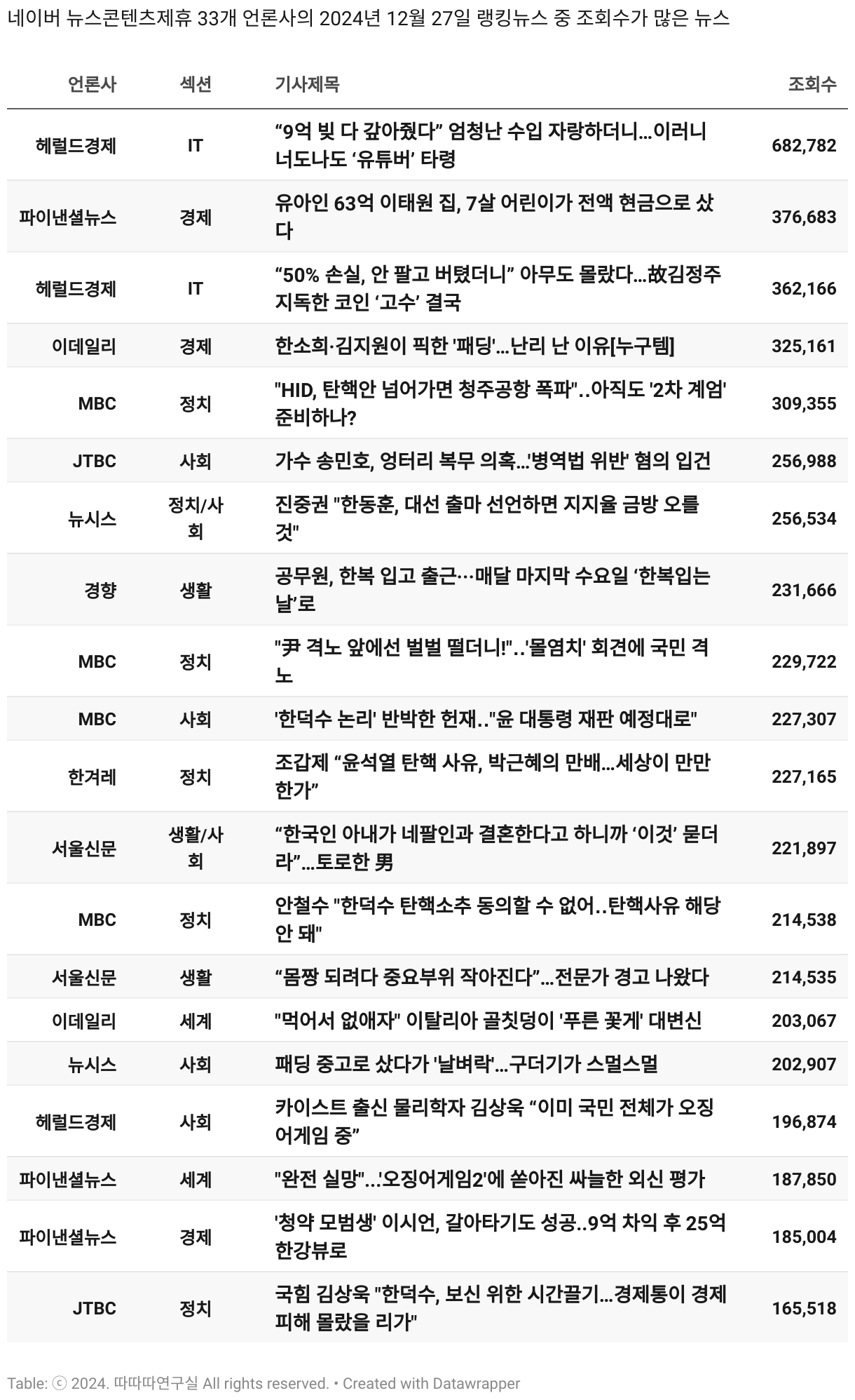 보도 시간대 기준 가장 흥한 기사 3건이 표시됩니다.