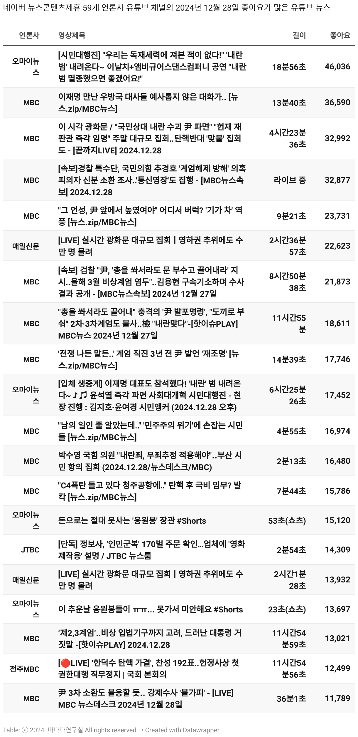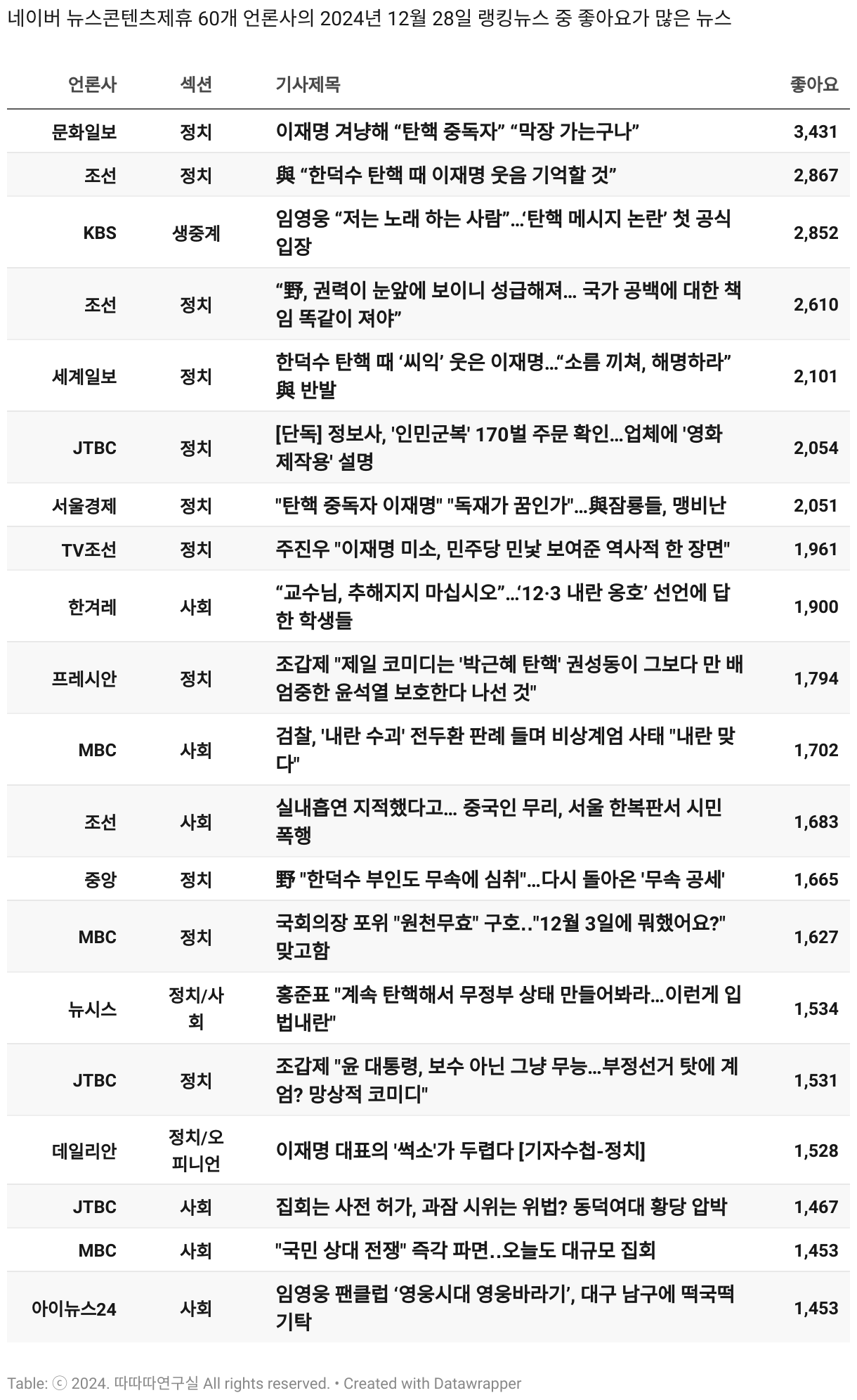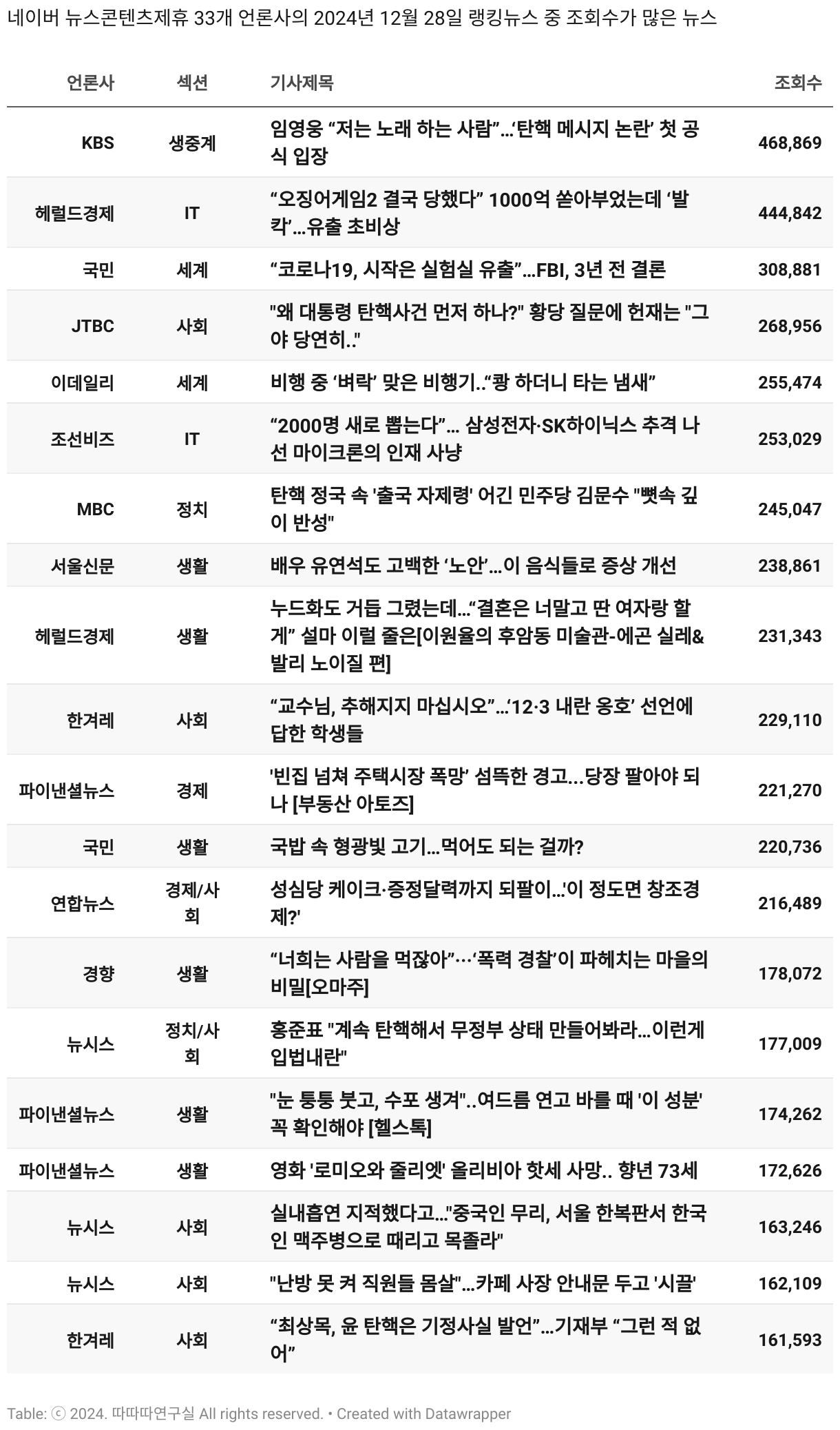 일간 흥한 뉴스 - 12월 28일 토요일