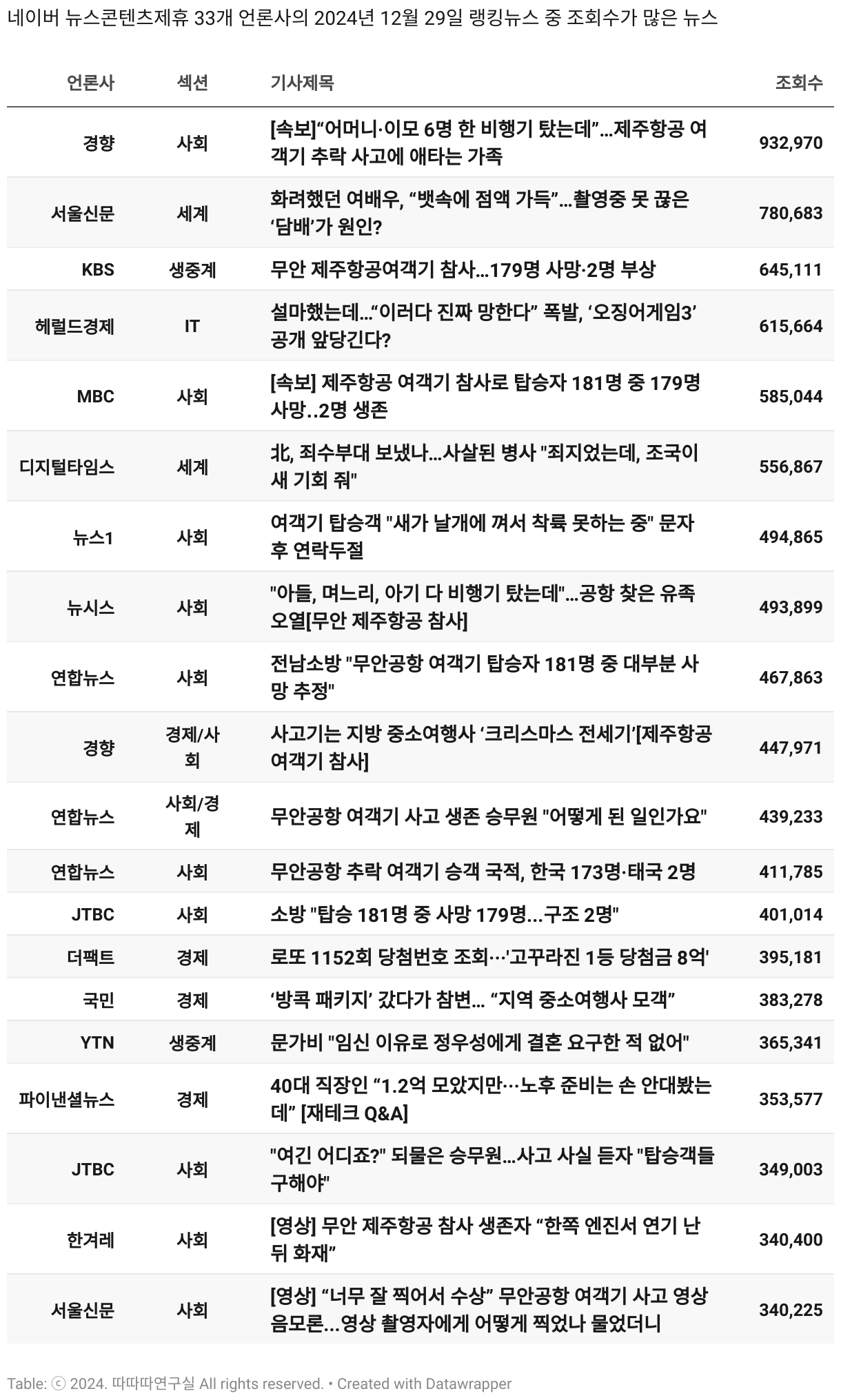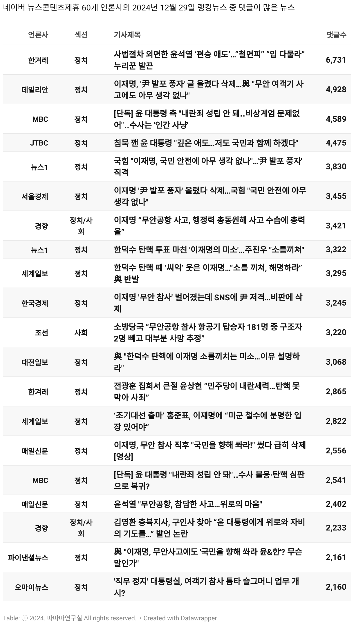 *데이터 수집 기간 : 2024년 6월 10일 *데이터 수집 대상 : 네이버 뉴스콘텐츠제휴 60개 언론사. 종합일간지 10개(경향신문, 국민일보, 동아일보, 문화일보, 서울신문, 세계일보, 조선일보, 중앙일보, 한겨레신문, 한국일보), 방송/통신사 14개(뉴스1, 뉴시스, 연합뉴스, 연합뉴스TV, 채널A, 한국경제TV, JTBC, KBS, MBC, MBN, SBS, SBS BIZ, TV조선, YTN), 경제지 11개(매일경제, 머니투데이, 비즈워치, 서울경제, 아시아경제, 이데일리, 조선비즈, 조세일보, 파이낸셜뉴스, 한국경제(유튜브제외), 헤럴드경제) 인터넷 8개(노컷뉴스, 더팩트, 데일리안, 머니S, 미디어오늘, 아이뉴스24, 오마이뉴스, 프레시안), IT 5개(디지털데일리,디지털타임스, 블로터, 전자신문, 지디넷코리아), 지역 12개(강원도민일보, 강원일보, 경기일보, 국제신문, 대구MBC, 대전일보, 매일신문, 부산일보, 전주MBC, CJB청주방송, JIBS, kbc광주방송)