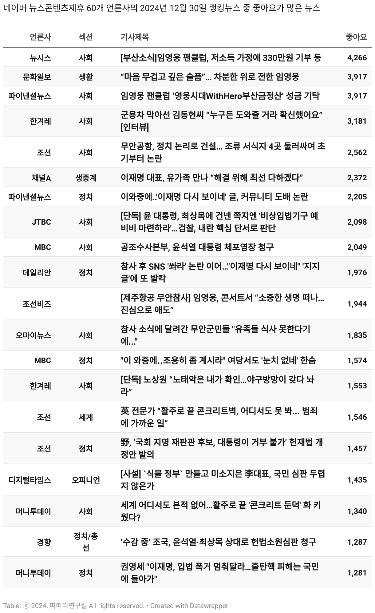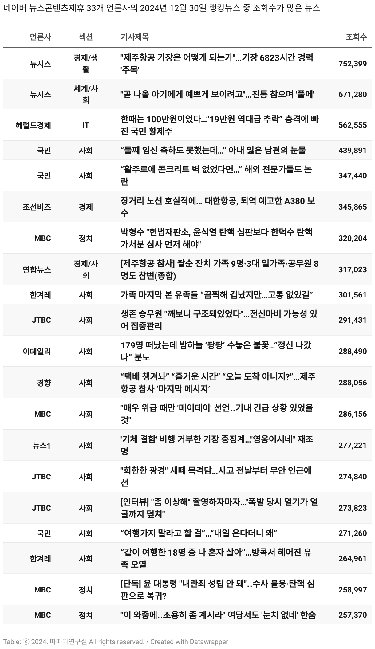 보도 시간대 기준 가장 흥한 기사 3건이 표시됩니다.