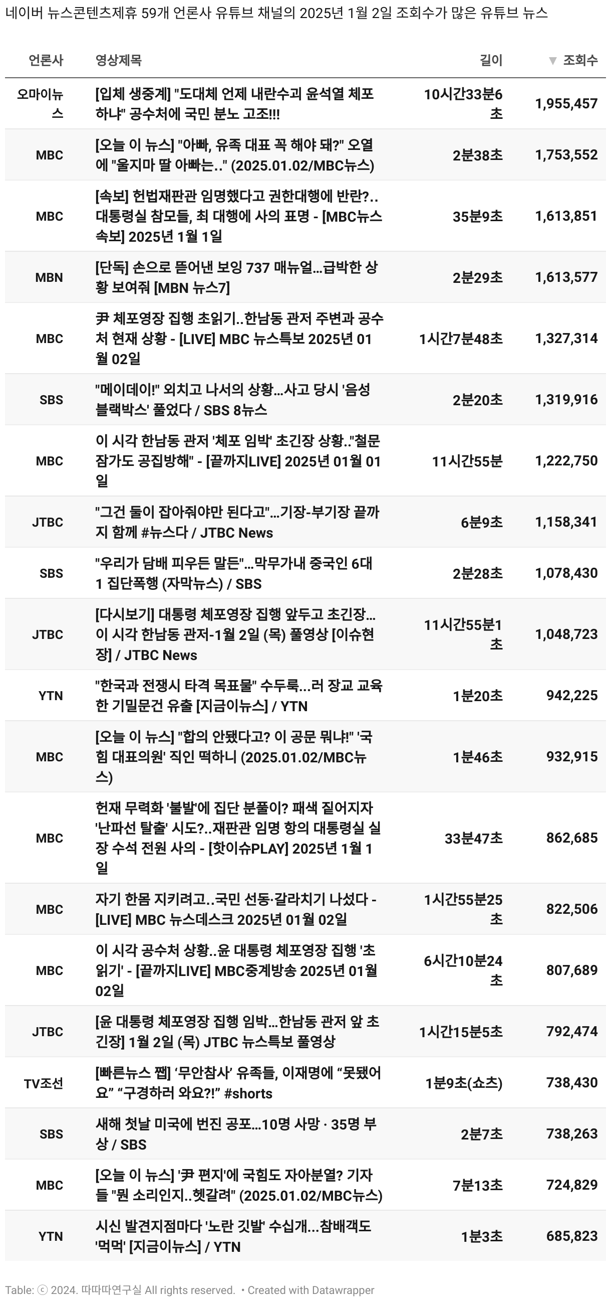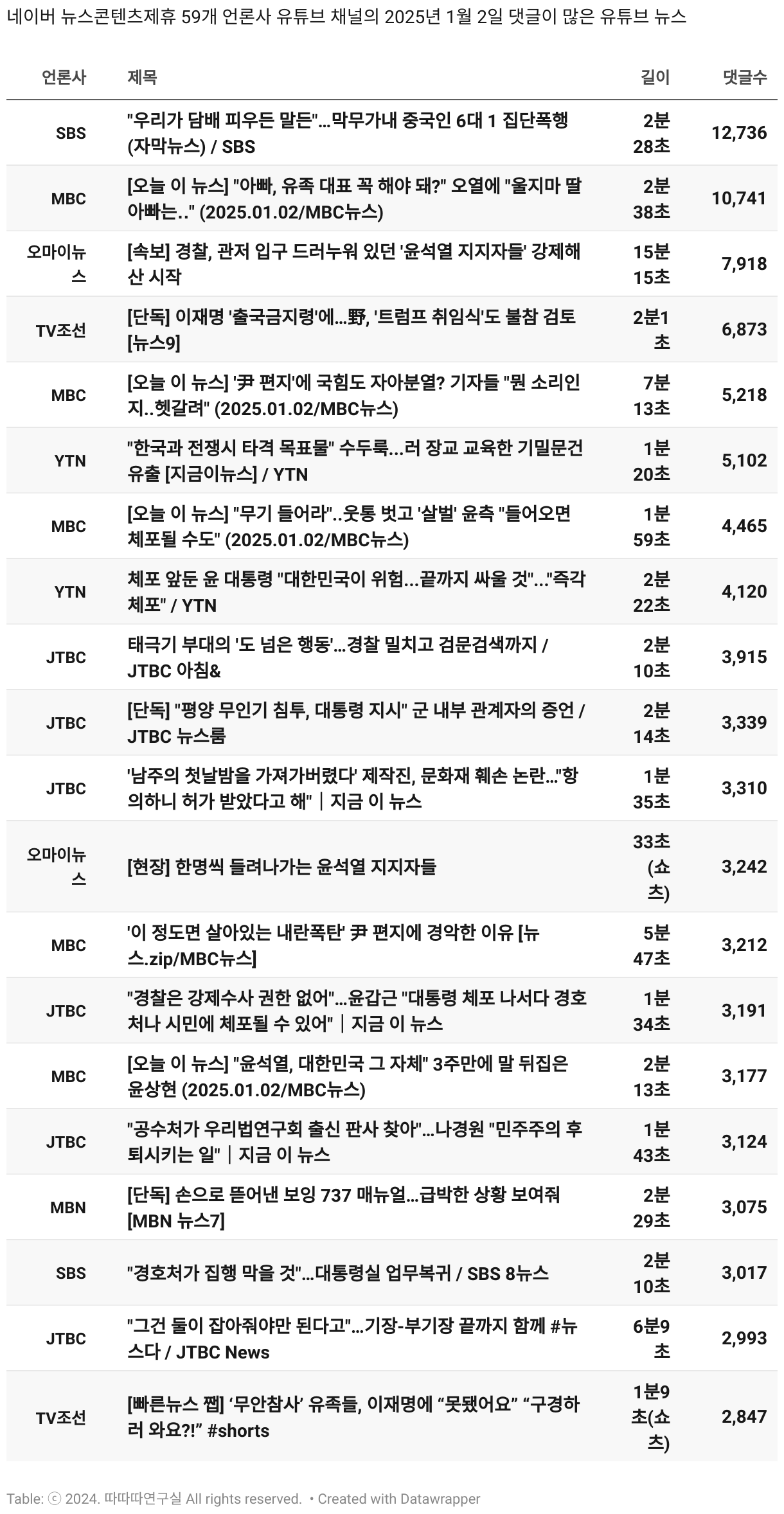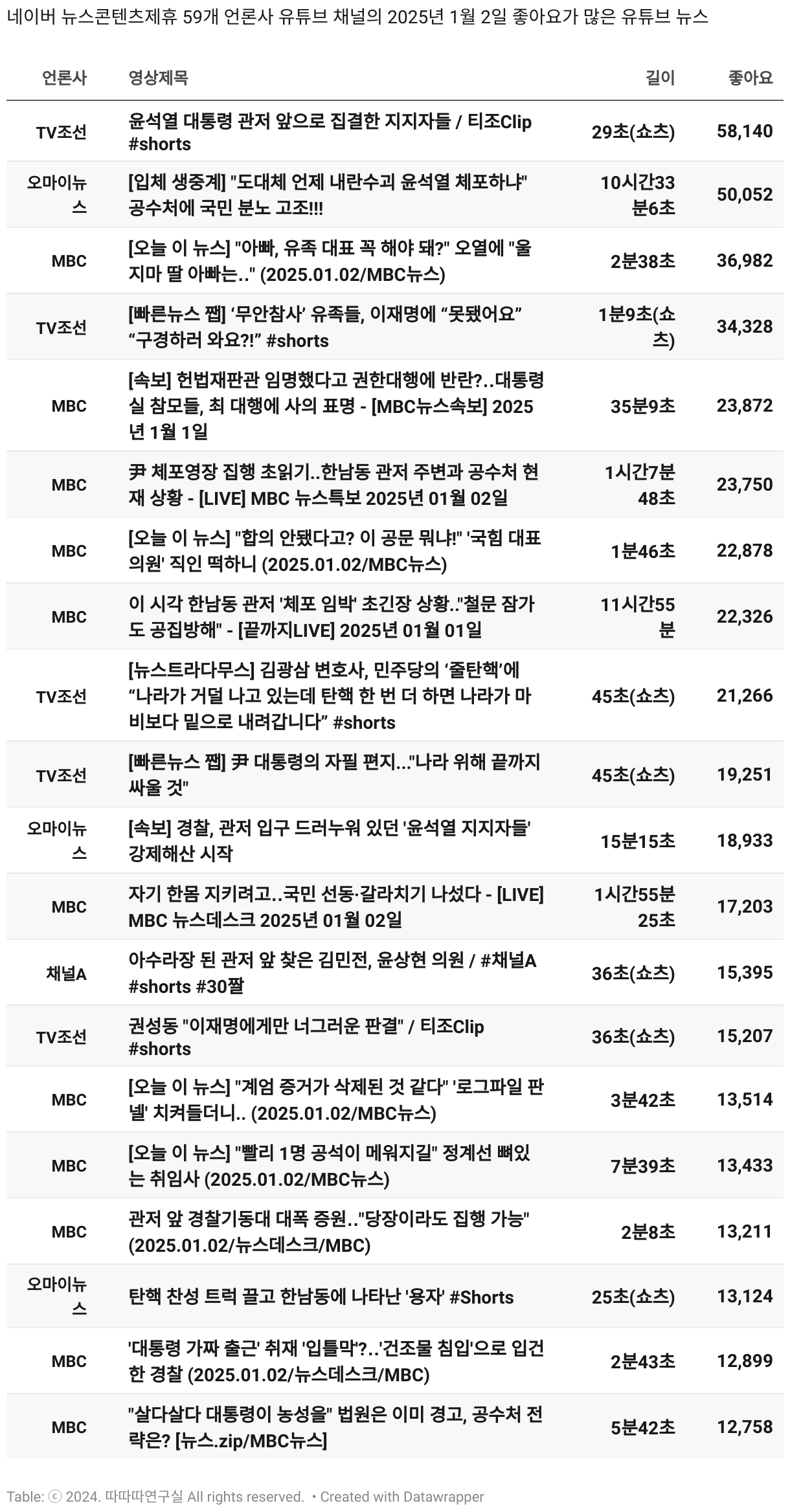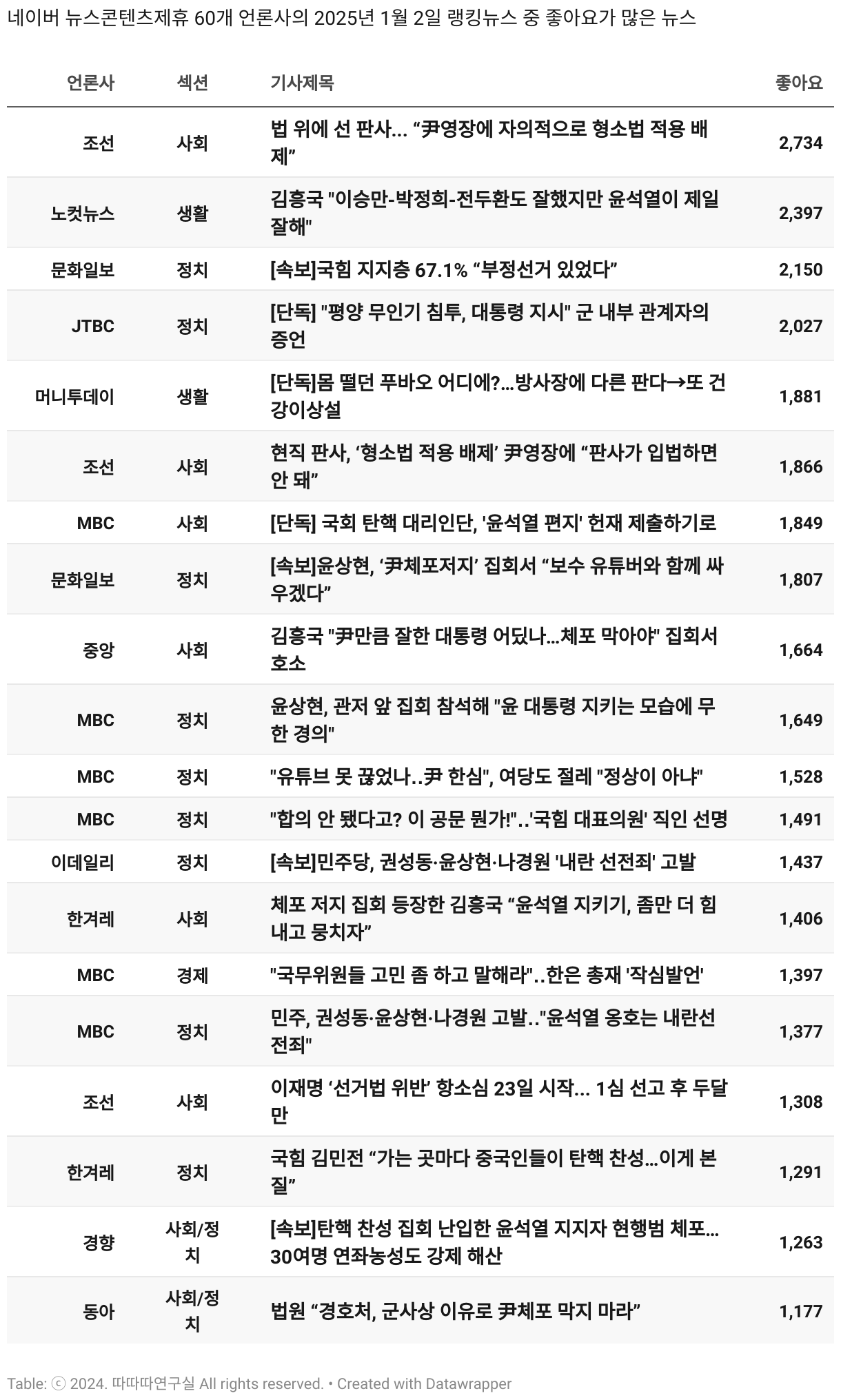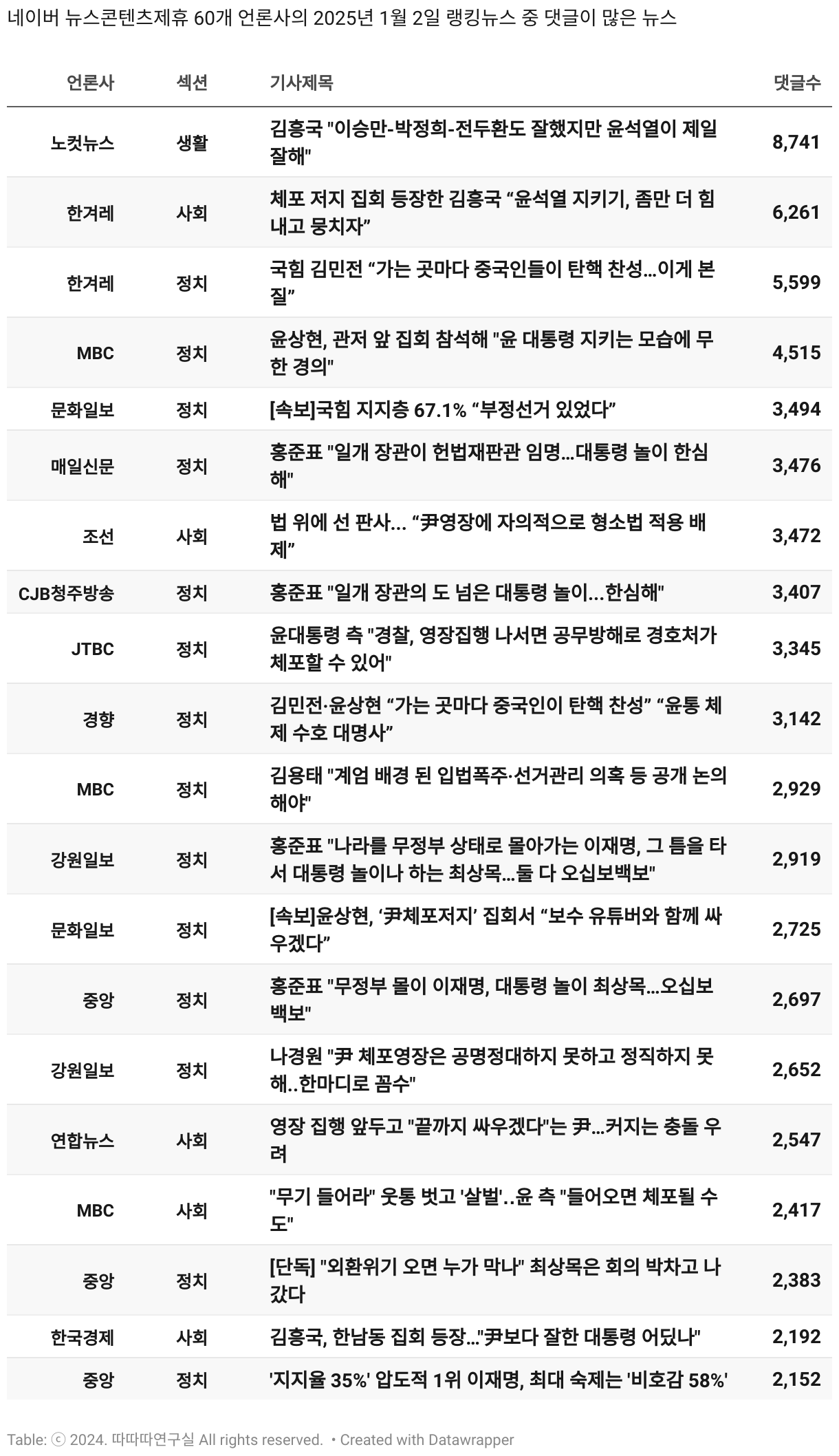 *데이터 수집 기간 : 2024년 6월 10일 *데이터 수집 대상 : 네이버 뉴스콘텐츠제휴 60개 언론사. 종합일간지 10개(경향신문, 국민일보, 동아일보, 문화일보, 서울신문, 세계일보, 조선일보, 중앙일보, 한겨레신문, 한국일보), 방송/통신사 14개(뉴스1, 뉴시스, 연합뉴스, 연합뉴스TV, 채널A, 한국경제TV, JTBC, KBS, MBC, MBN, SBS, SBS BIZ, TV조선, YTN), 경제지 11개(매일경제, 머니투데이, 비즈워치, 서울경제, 아시아경제, 이데일리, 조선비즈, 조세일보, 파이낸셜뉴스, 한국경제(유튜브제외), 헤럴드경제) 인터넷 8개(노컷뉴스, 더팩트, 데일리안, 머니S, 미디어오늘, 아이뉴스24, 오마이뉴스, 프레시안), IT 5개(디지털데일리,디지털타임스, 블로터, 전자신문, 지디넷코리아), 지역 12개(강원도민일보, 강원일보, 경기일보, 국제신문, 대구MBC, 대전일보, 매일신문, 부산일보, 전주MBC, CJB청주방송, JIBS, kbc광주방송)