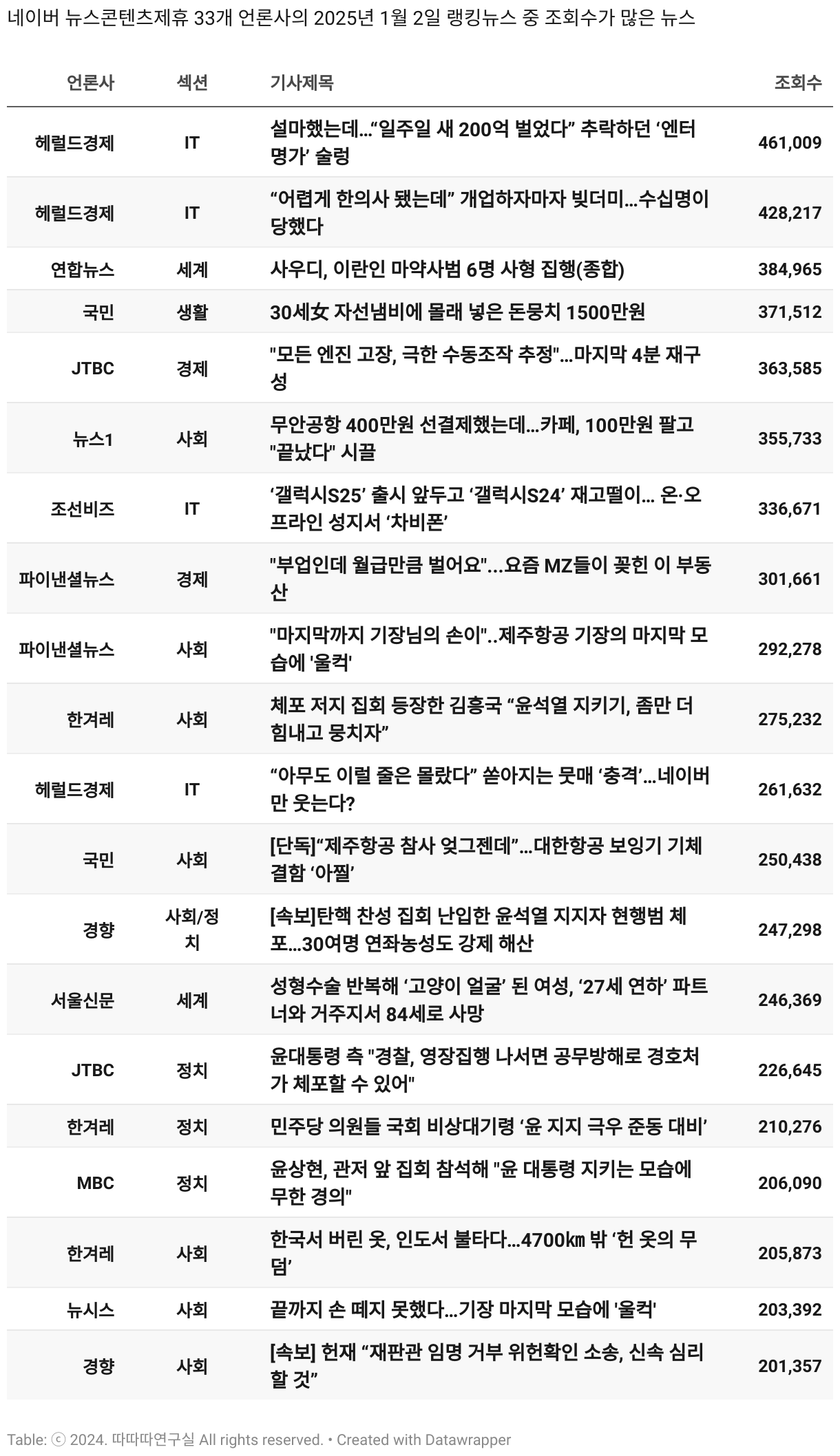 보도 시간대 기준 가장 흥한 기사 3건이 표시됩니다.