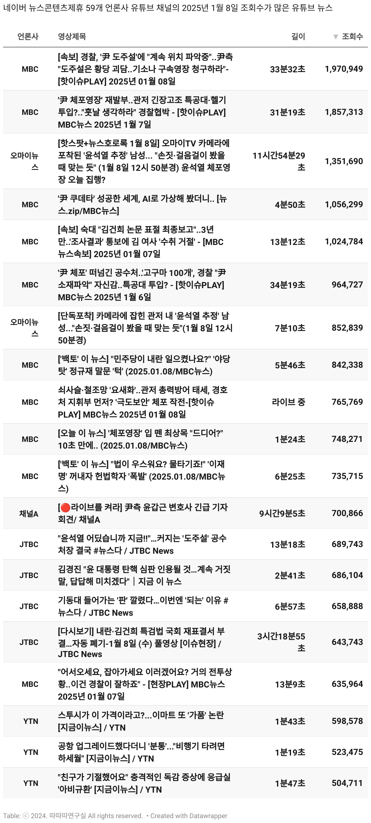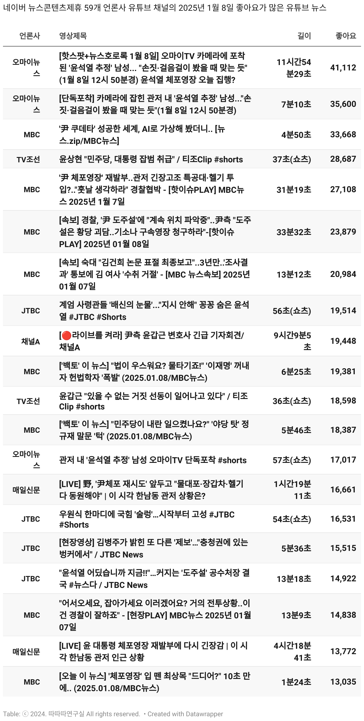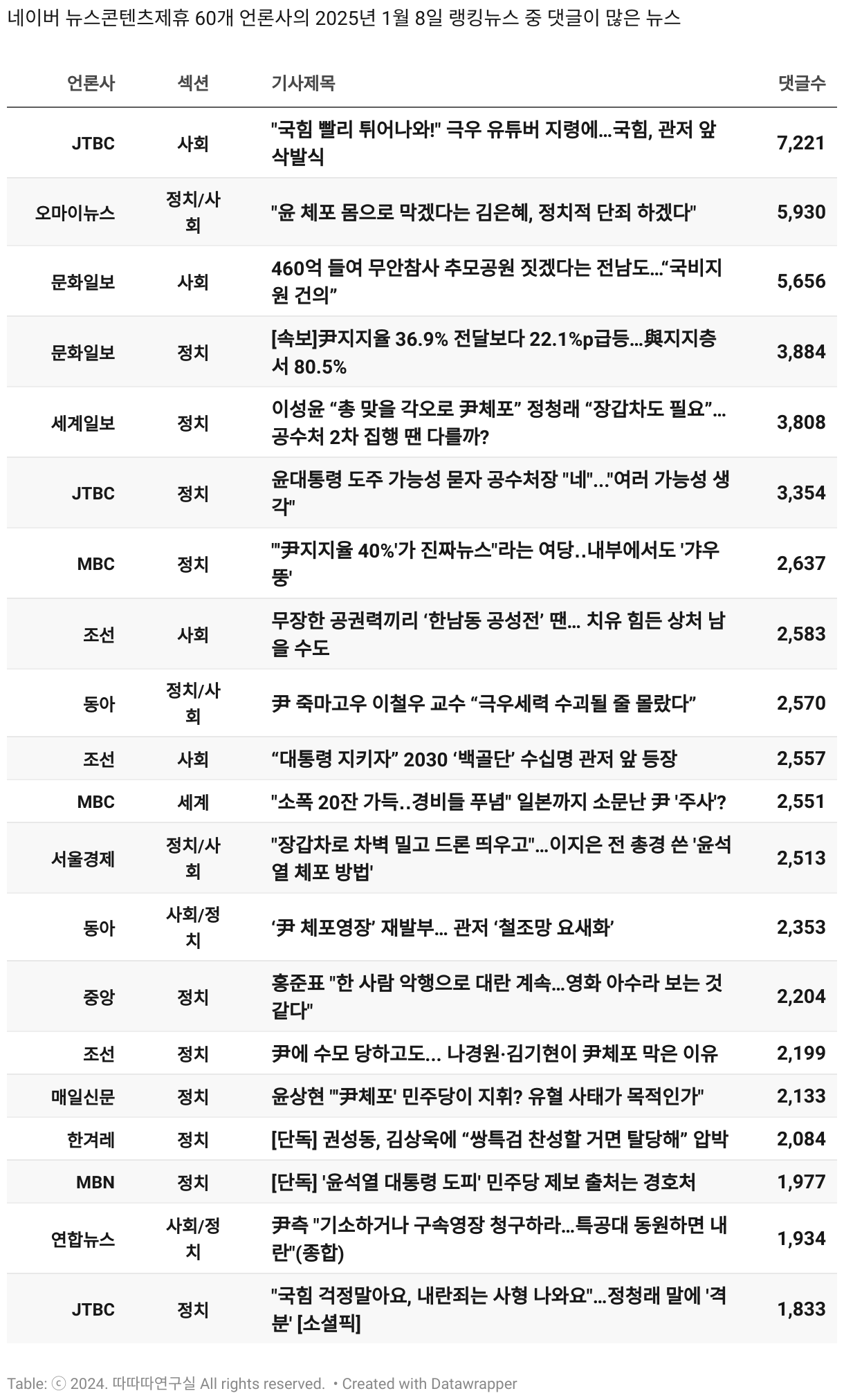 *데이터 수집 기간 : 2024년 6월 10일 *데이터 수집 대상 : 네이버 뉴스콘텐츠제휴 60개 언론사. 종합일간지 10개(경향신문, 국민일보, 동아일보, 문화일보, 서울신문, 세계일보, 조선일보, 중앙일보, 한겨레신문, 한국일보), 방송/통신사 14개(뉴스1, 뉴시스, 연합뉴스, 연합뉴스TV, 채널A, 한국경제TV, JTBC, KBS, MBC, MBN, SBS, SBS BIZ, TV조선, YTN), 경제지 11개(매일경제, 머니투데이, 비즈워치, 서울경제, 아시아경제, 이데일리, 조선비즈, 조세일보, 파이낸셜뉴스, 한국경제(유튜브제외), 헤럴드경제) 인터넷 8개(노컷뉴스, 더팩트, 데일리안, 머니S, 미디어오늘, 아이뉴스24, 오마이뉴스, 프레시안), IT 5개(디지털데일리,디지털타임스, 블로터, 전자신문, 지디넷코리아), 지역 12개(강원도민일보, 강원일보, 경기일보, 국제신문, 대구MBC, 대전일보, 매일신문, 부산일보, 전주MBC, CJB청주방송, JIBS, kbc광주방송)