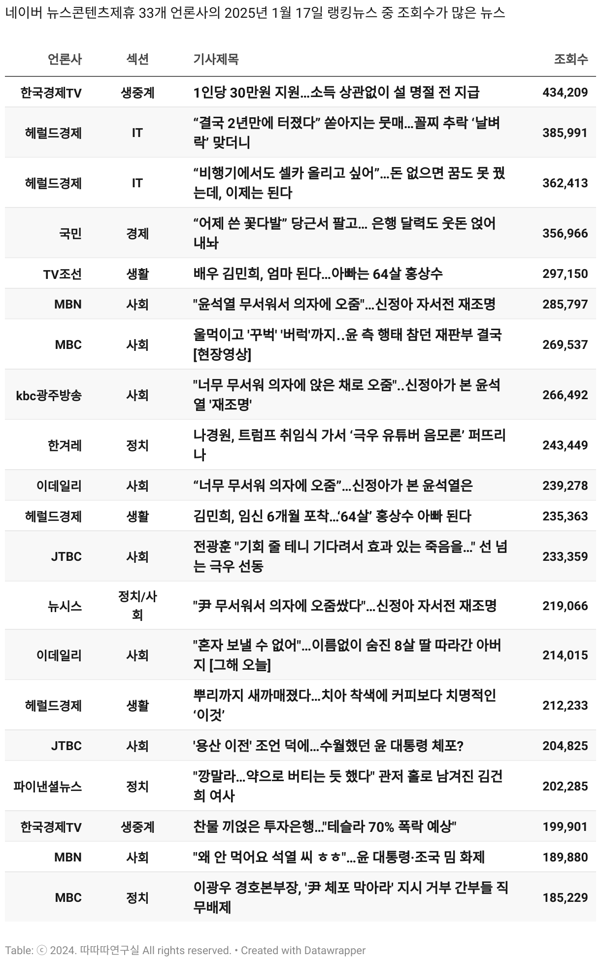 보도 시간대 기준 가장 흥한 기사 3건이 표시됩니다.