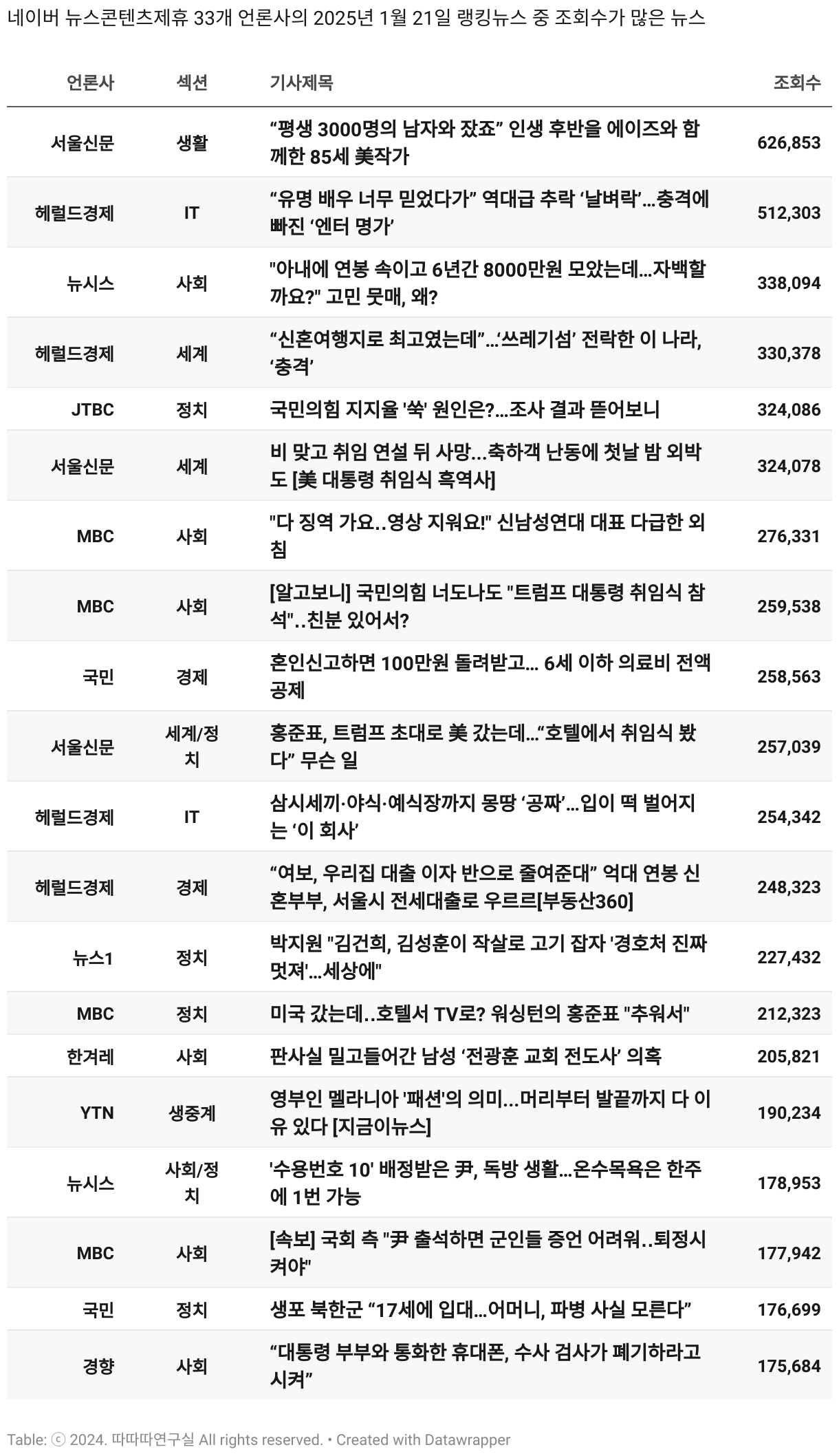 보도 시간대 기준 가장 흥한 기사 3건이 표시됩니다.