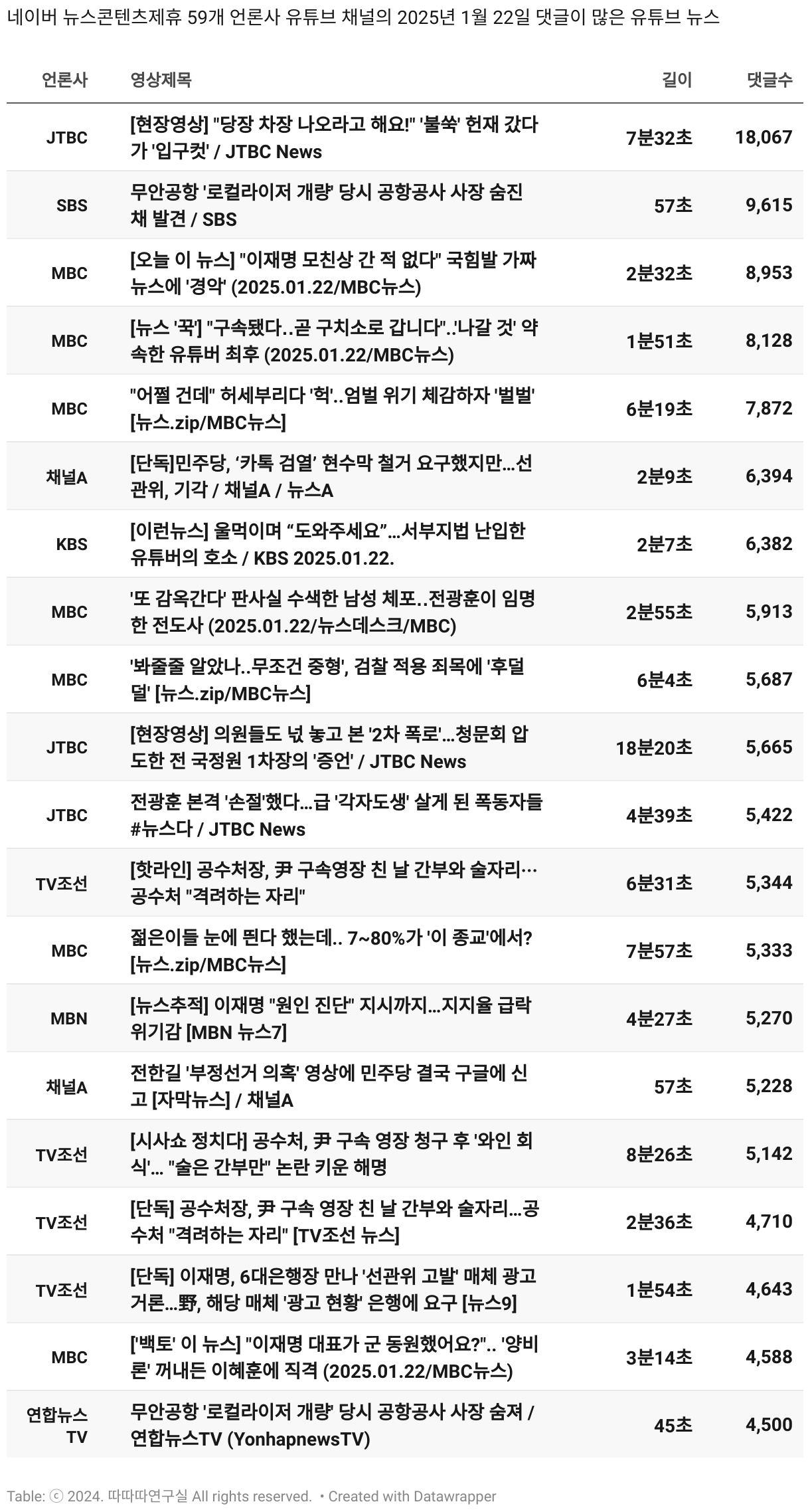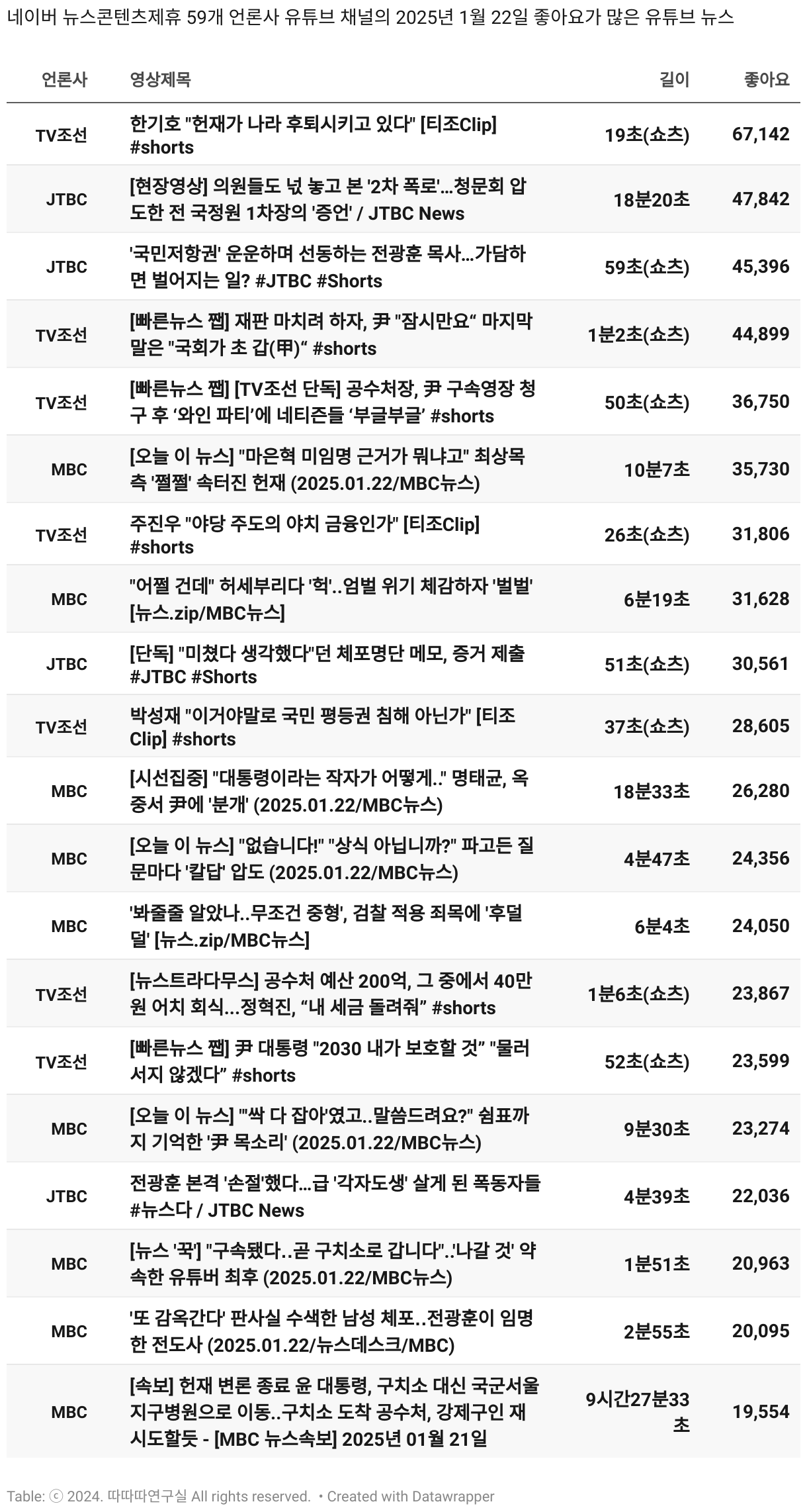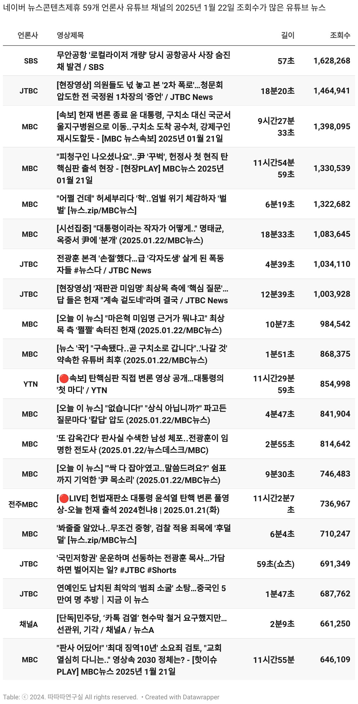 *데이터 수집 기간 : 2024년 6월 10일 *데이터 수집 대상 : 네이버 뉴스콘텐츠제휴 60개 언론사. 종합일간지 10개(경향신문, 국민일보, 동아일보, 문화일보, 서울신문, 세계일보, 조선일보, 중앙일보, 한겨레신문, 한국일보), 방송/통신사 14개(뉴스1, 뉴시스, 연합뉴스, 연합뉴스TV, 채널A, 한국경제TV, JTBC, KBS, MBC, MBN, SBS, SBS BIZ, TV조선, YTN), 경제지 11개(매일경제, 머니투데이, 비즈워치, 서울경제, 아시아경제, 이데일리, 조선비즈, 조세일보, 파이낸셜뉴스, 한국경제(유튜브제외), 헤럴드경제) 인터넷 8개(노컷뉴스, 더팩트, 데일리안, 머니S, 미디어오늘, 아이뉴스24, 오마이뉴스, 프레시안), IT 5개(디지털데일리,디지털타임스, 블로터, 전자신문, 지디넷코리아), 지역 12개(강원도민일보, 강원일보, 경기일보, 국제신문, 대구MBC, 대전일보, 매일신문, 부산일보, 전주MBC, CJB청주방송, JIBS, kbc광주방송)