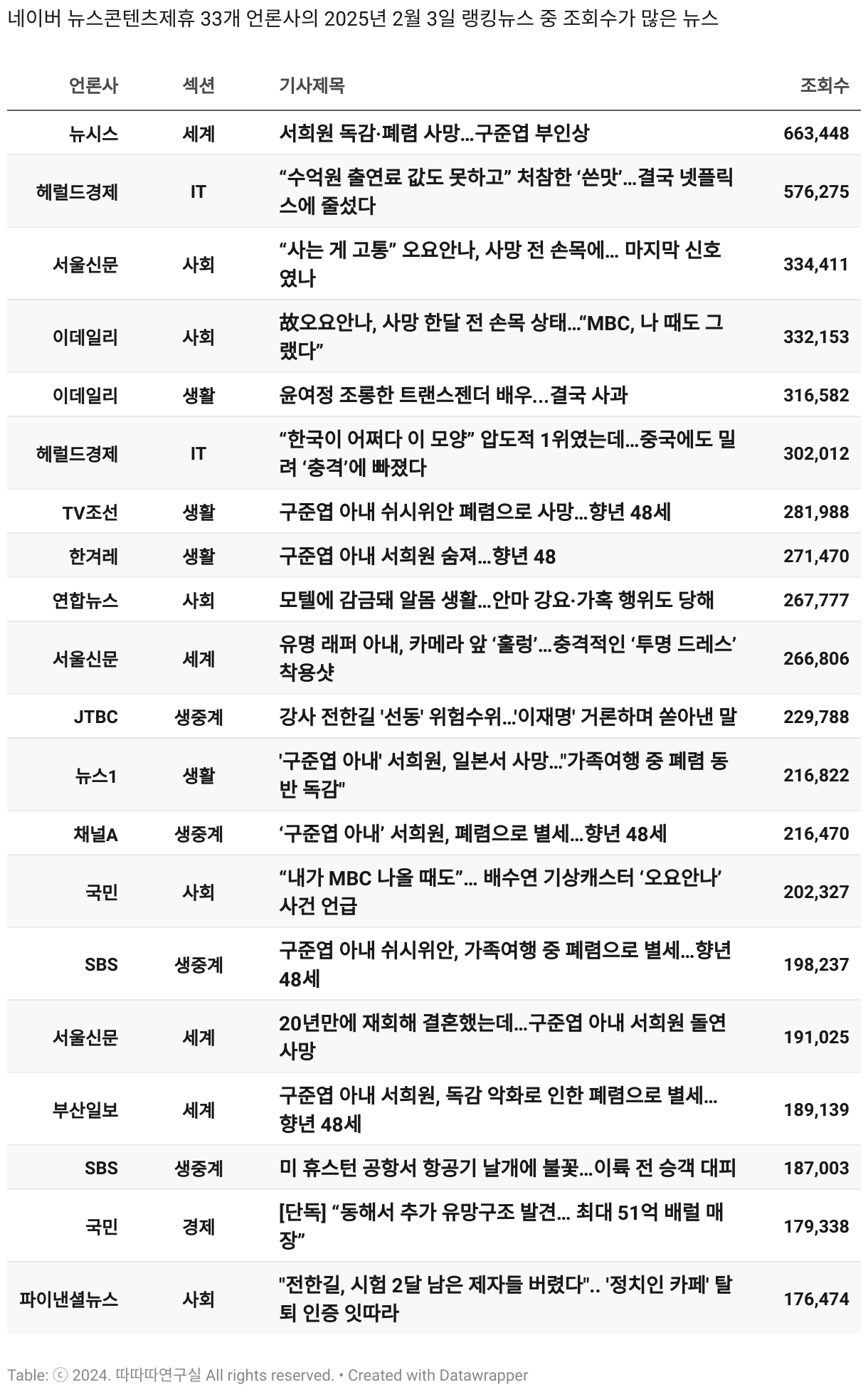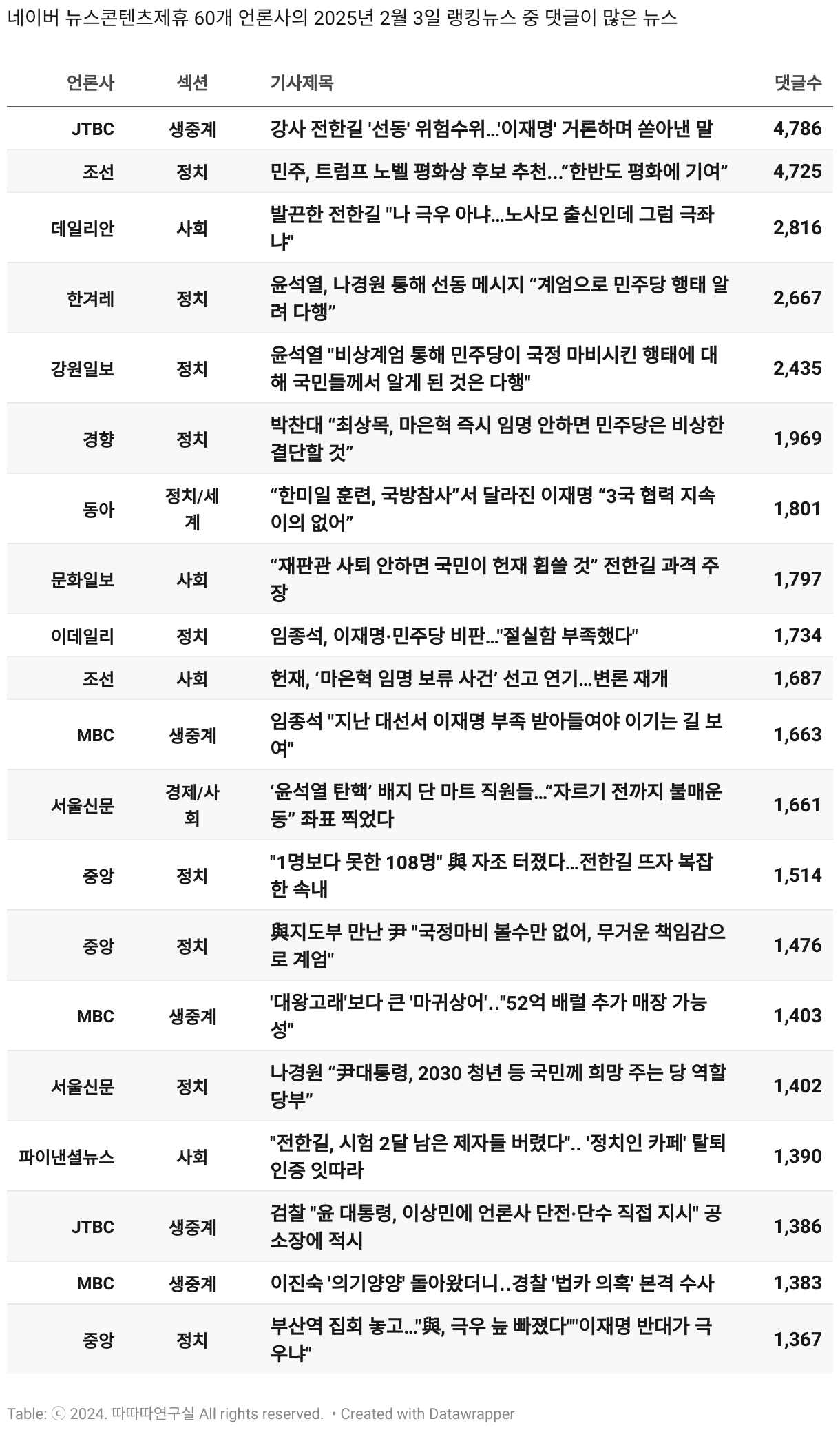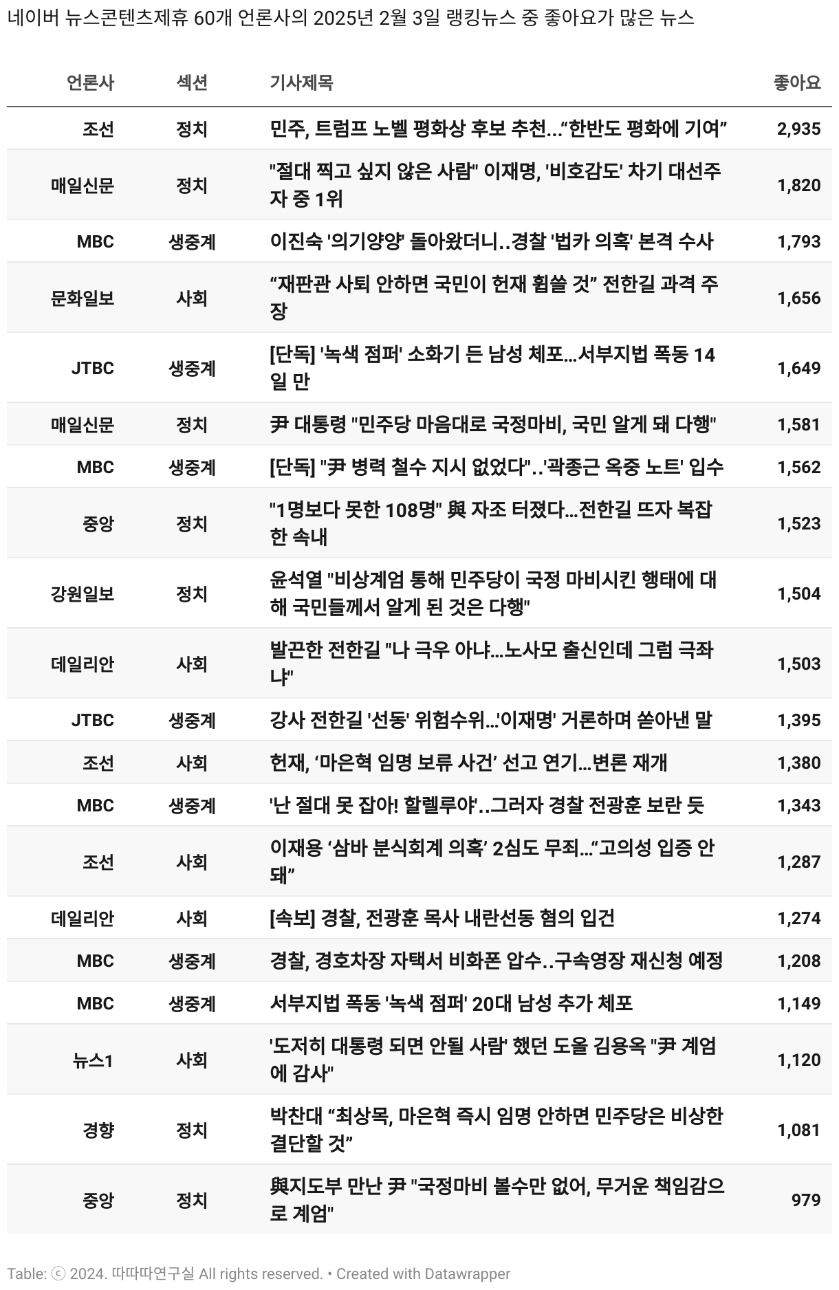 보도 시간대 기준 가장 흥한 기사 3건이 표시됩니다.