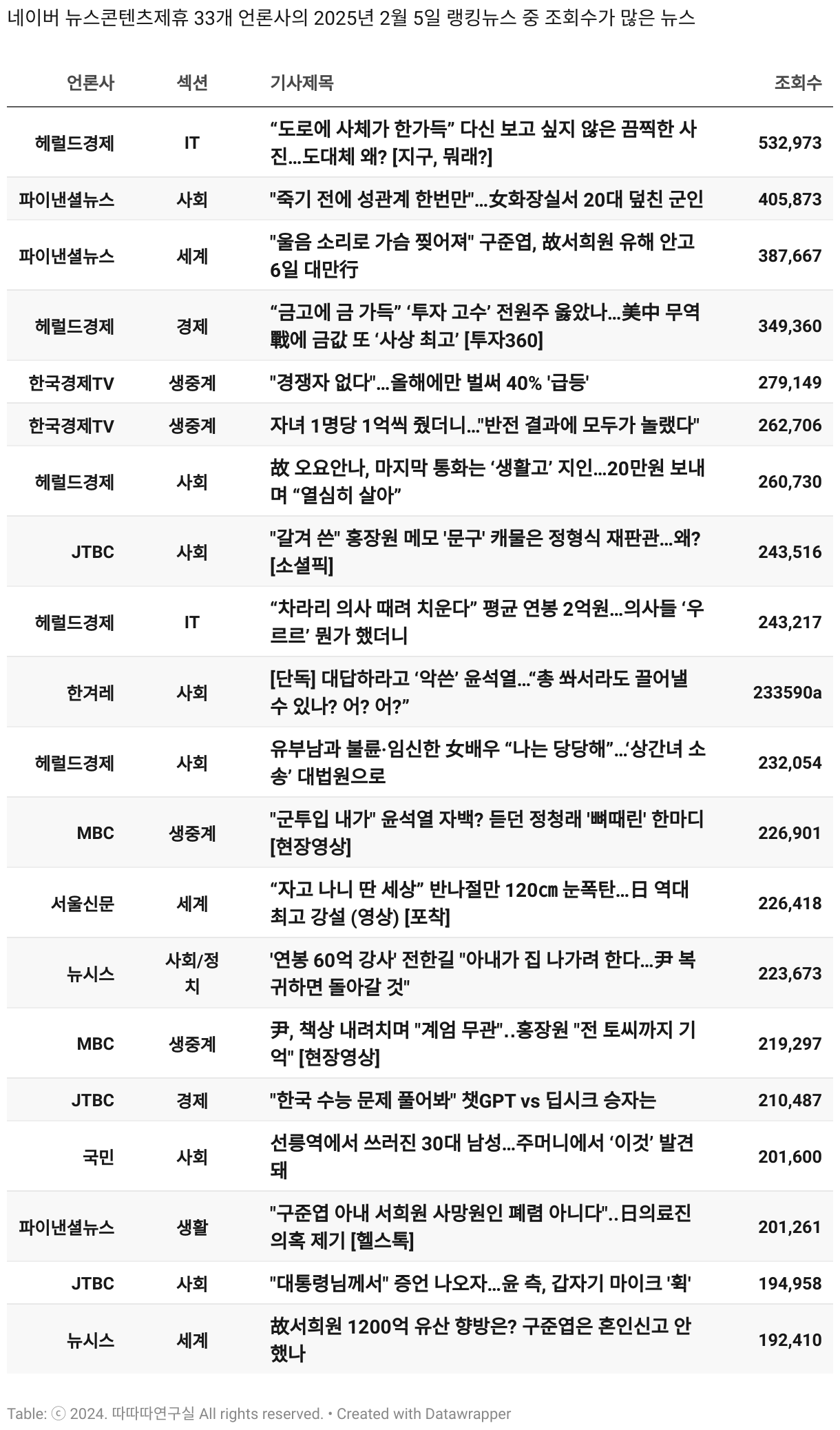 보도 시간대 기준 가장 흥한 기사 3건이 표시됩니다.
