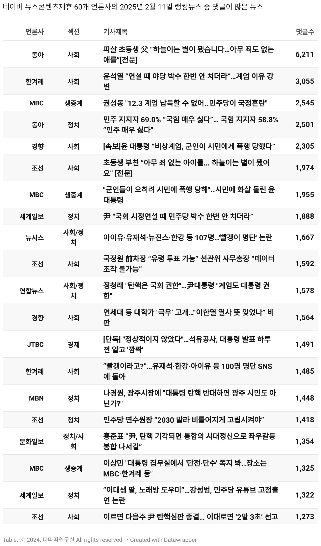 보도 시간대 기준 가장 흥한 기사 3건이 표시됩니다.