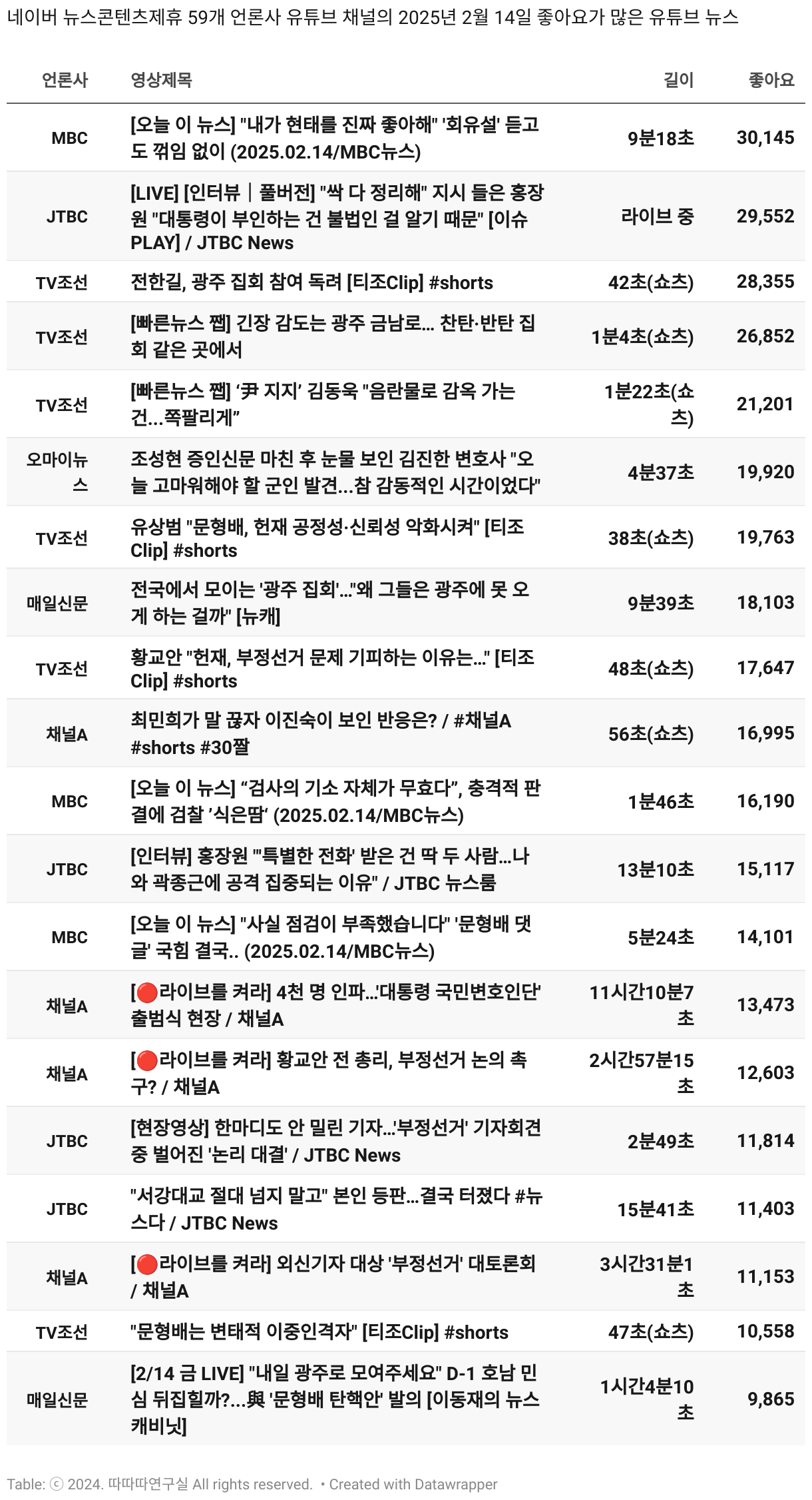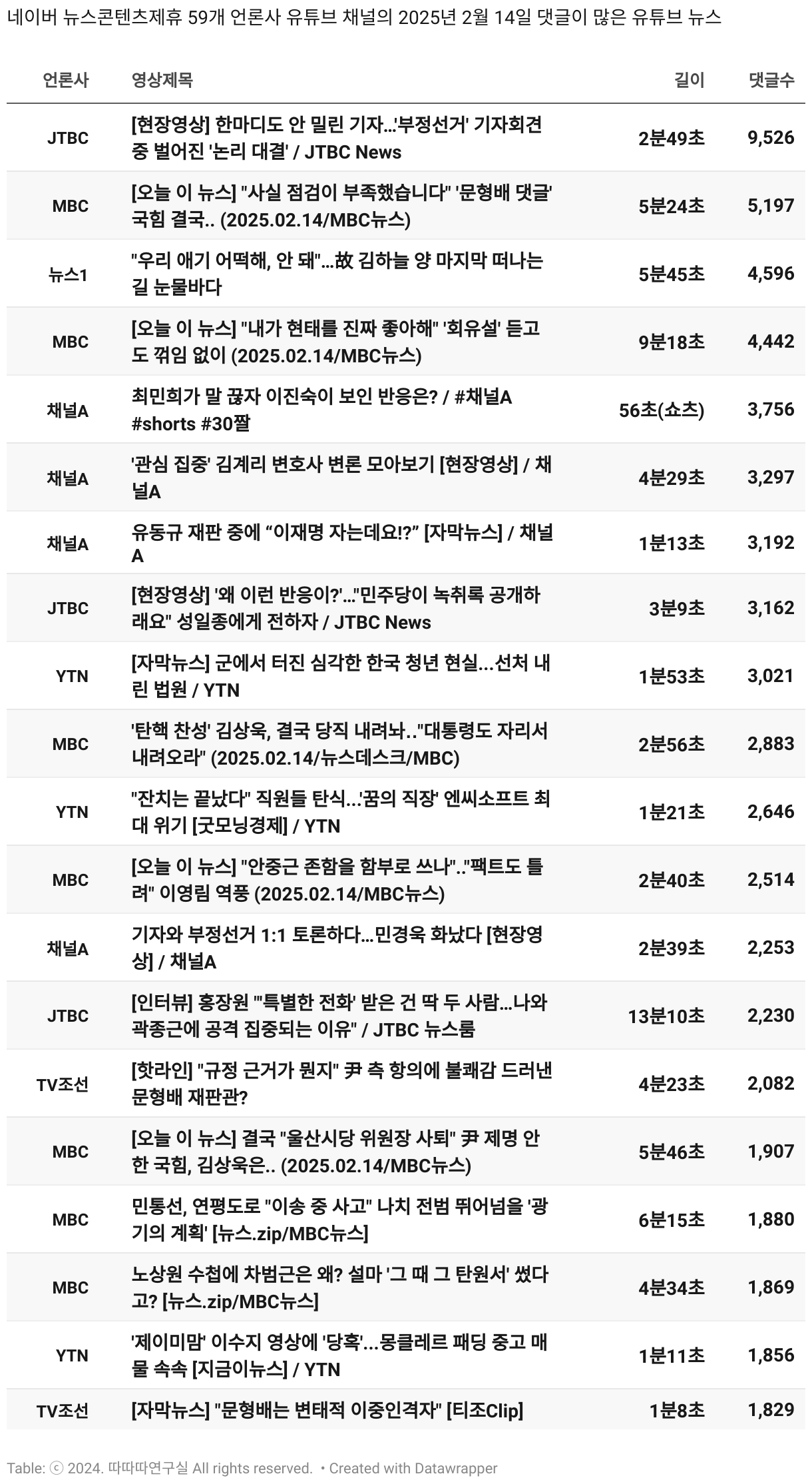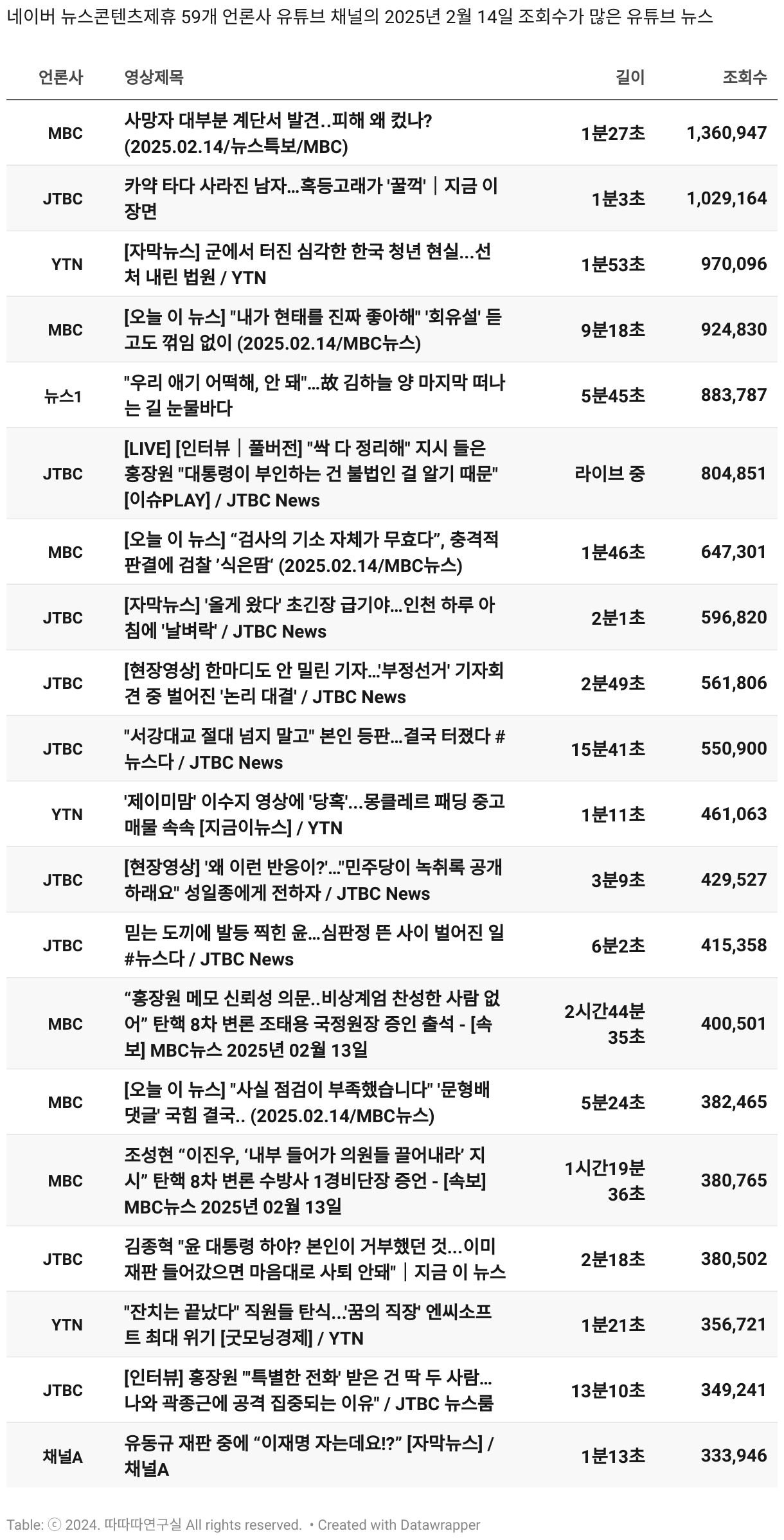 *데이터 수집 기간 : 2024년 6월 10일 *데이터 수집 대상 : 네이버 뉴스콘텐츠제휴 60개 언론사. 종합일간지 10개(경향신문, 국민일보, 동아일보, 문화일보, 서울신문, 세계일보, 조선일보, 중앙일보, 한겨레신문, 한국일보), 방송/통신사 14개(뉴스1, 뉴시스, 연합뉴스, 연합뉴스TV, 채널A, 한국경제TV, JTBC, KBS, MBC, MBN, SBS, SBS BIZ, TV조선, YTN), 경제지 11개(매일경제, 머니투데이, 비즈워치, 서울경제, 아시아경제, 이데일리, 조선비즈, 조세일보, 파이낸셜뉴스, 한국경제(유튜브제외), 헤럴드경제) 인터넷 8개(노컷뉴스, 더팩트, 데일리안, 머니S, 미디어오늘, 아이뉴스24, 오마이뉴스, 프레시안), IT 5개(디지털데일리,디지털타임스, 블로터, 전자신문, 지디넷코리아), 지역 12개(강원도민일보, 강원일보, 경기일보, 국제신문, 대구MBC, 대전일보, 매일신문, 부산일보, 전주MBC, CJB청주방송, JIBS, kbc광주방송)