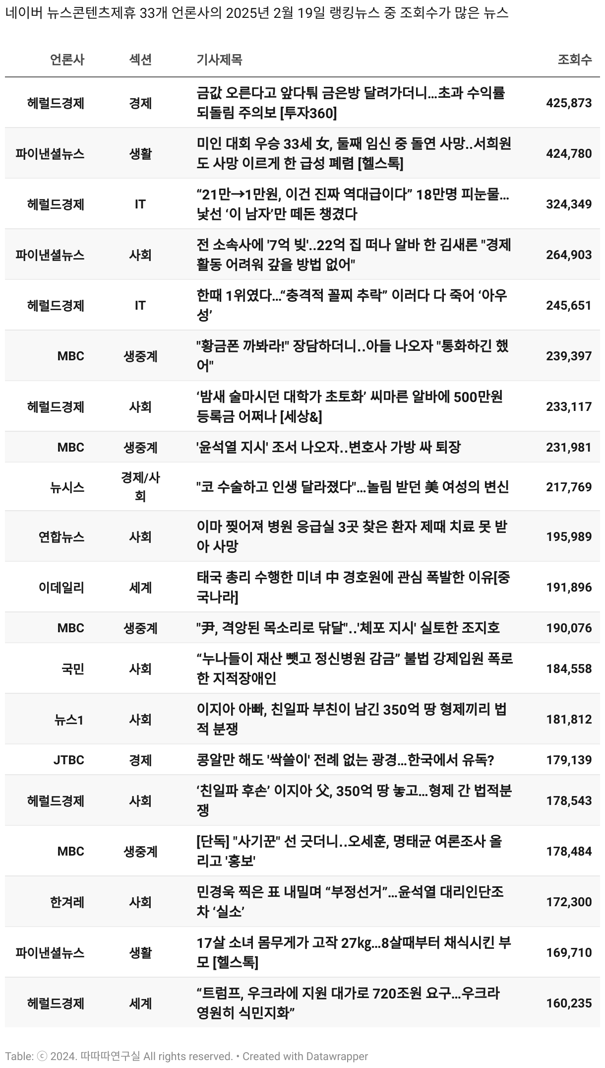 보도 시간대 기준 가장 흥한 기사 3건이 표시됩니다.