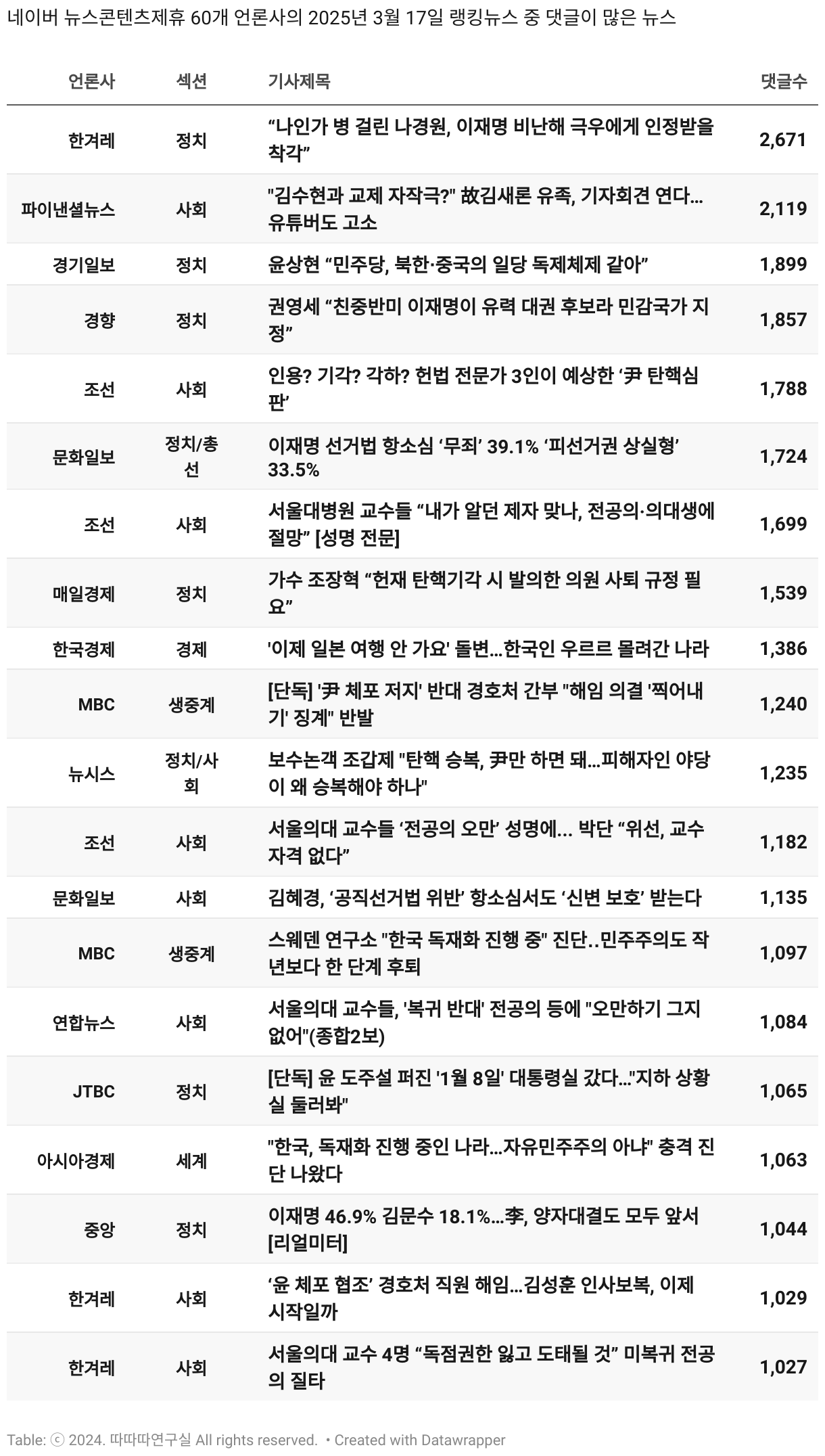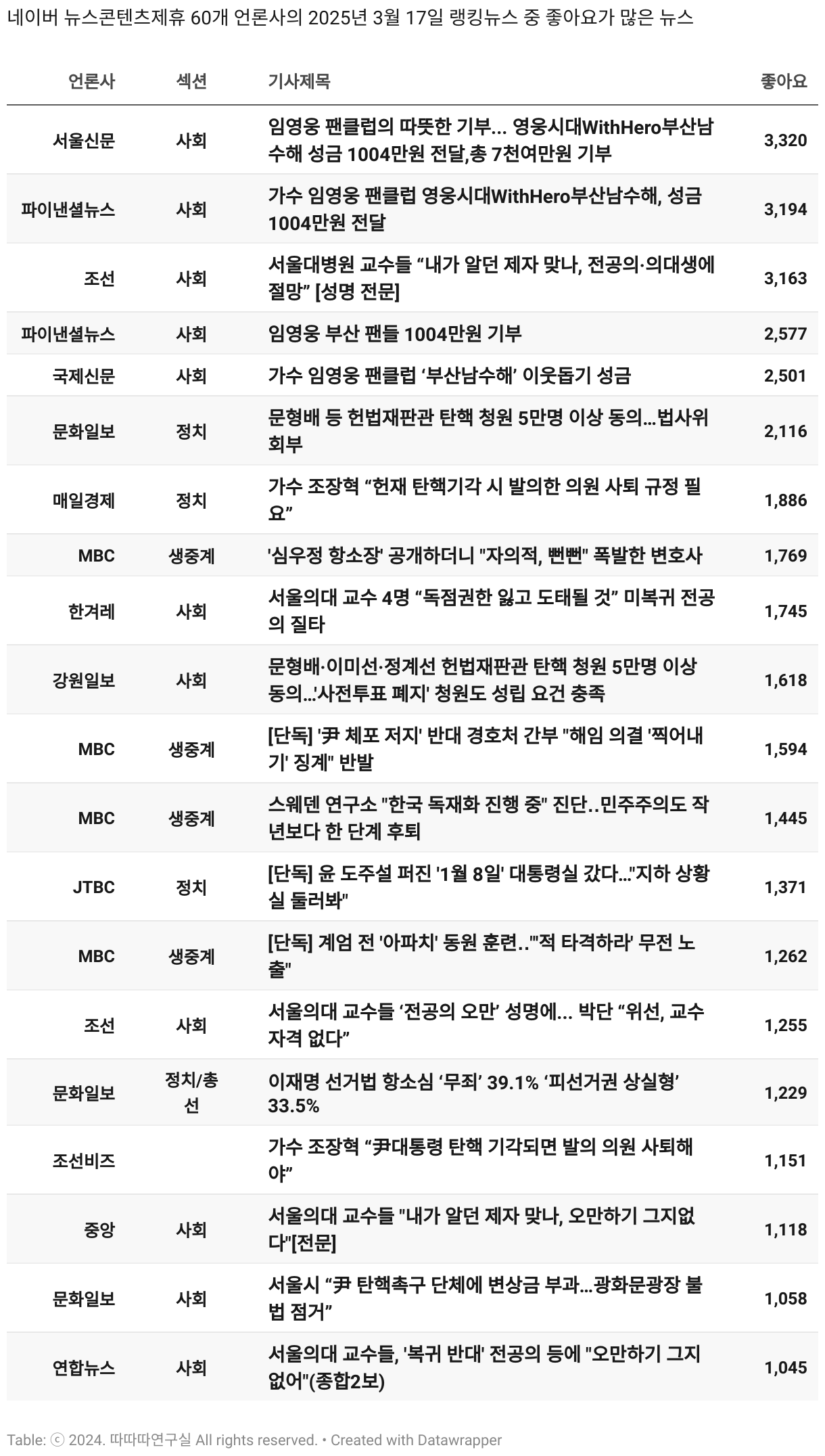 보도 시간대 기준 가장 흥한 기사 3건이 표시됩니다.