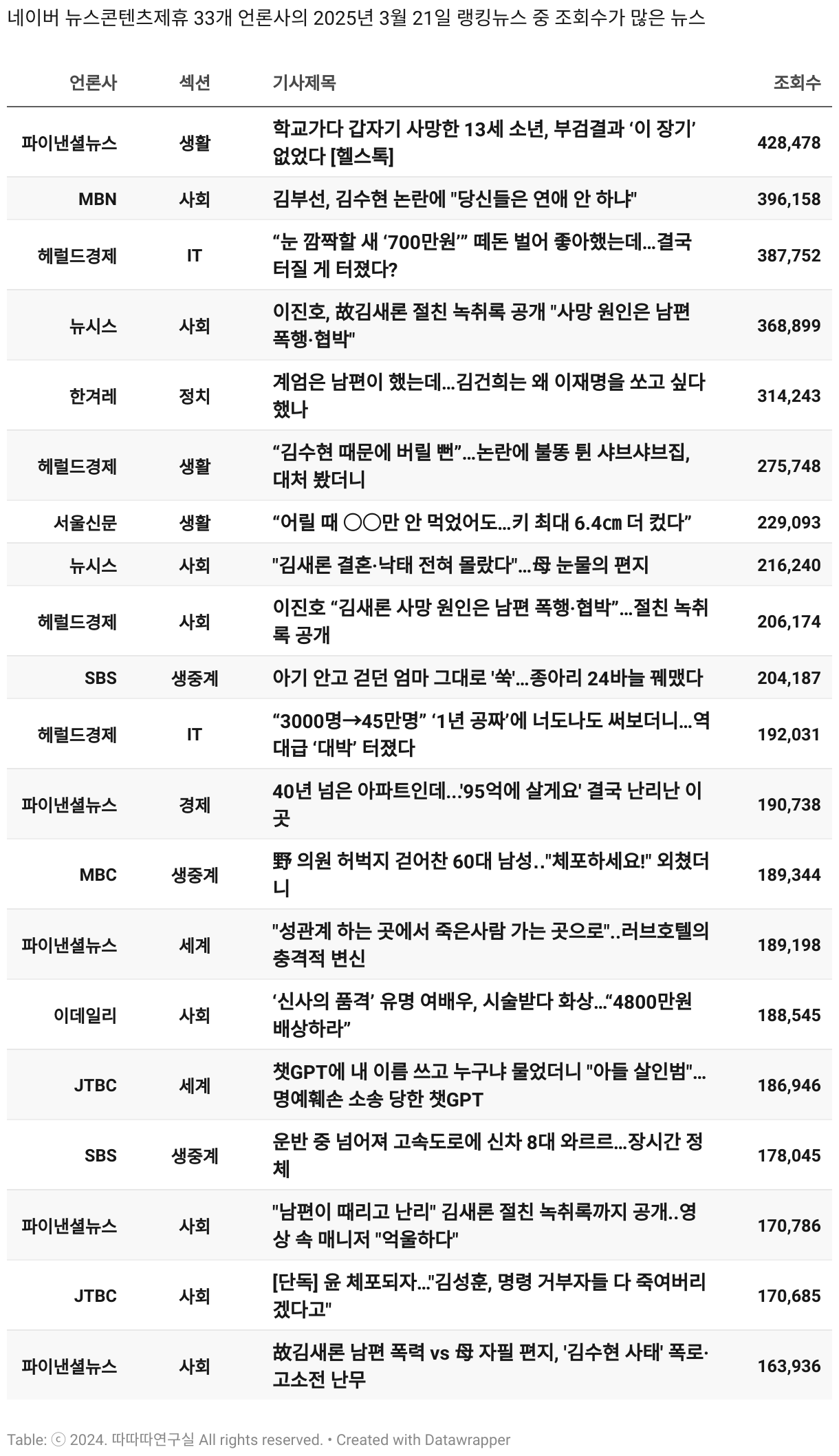 보도 시간대 기준 가장 흥한 기사 3건이 표시됩니다.
