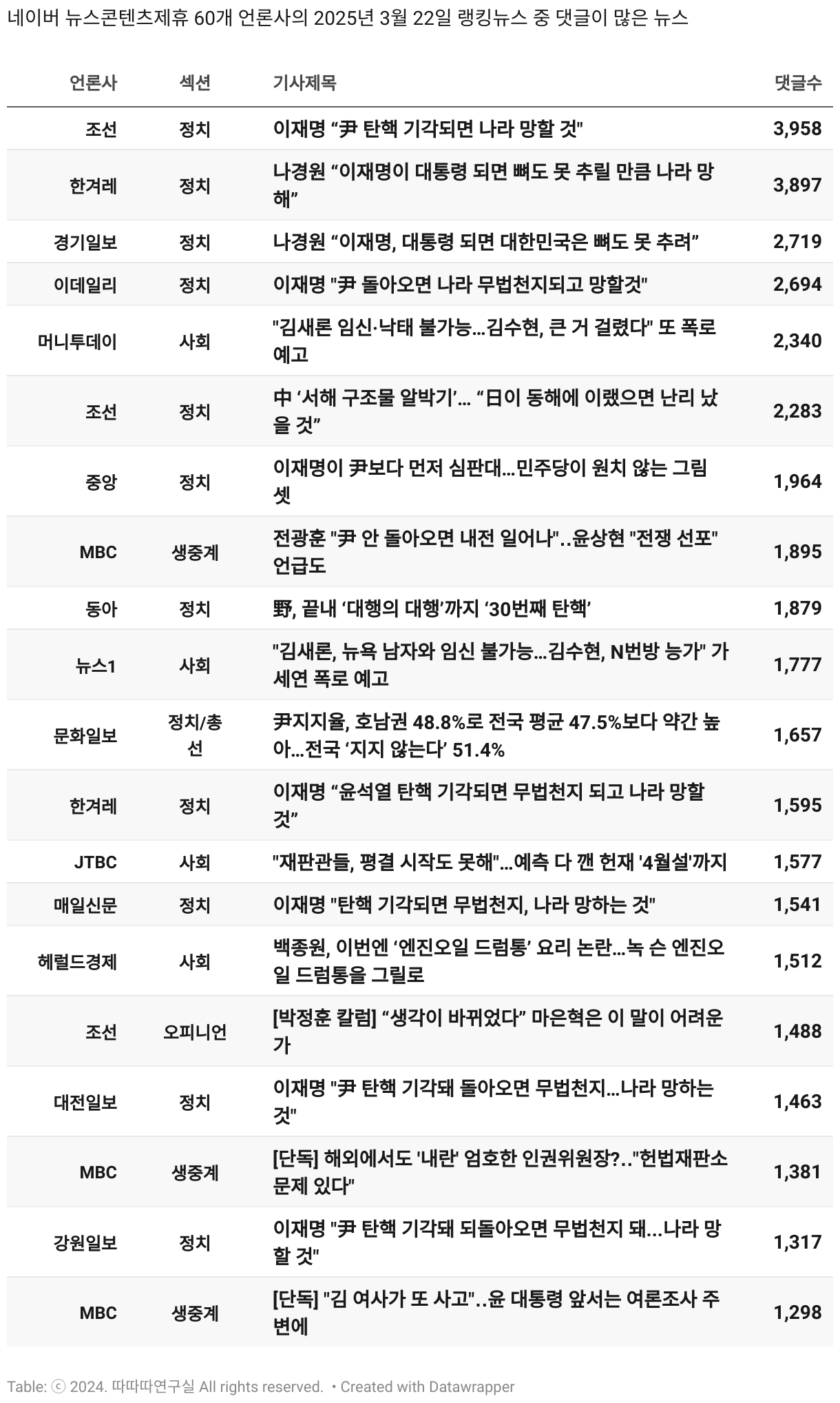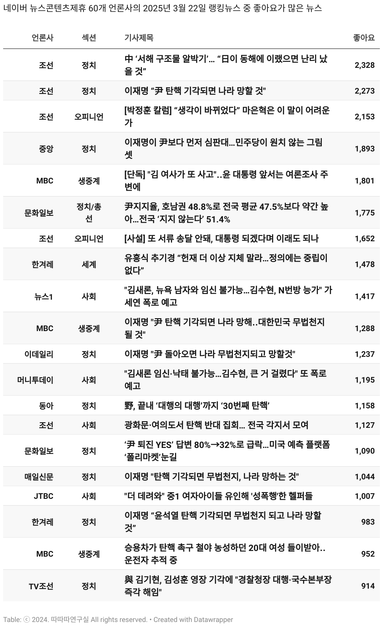 보도 시간대 기준 가장 흥한 기사 3건이 표시됩니다.