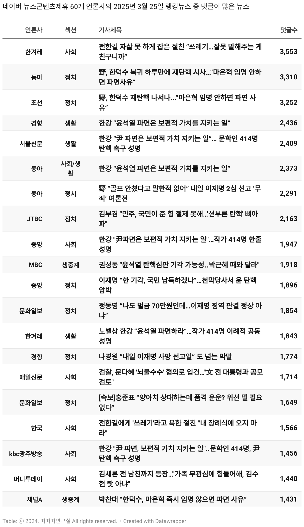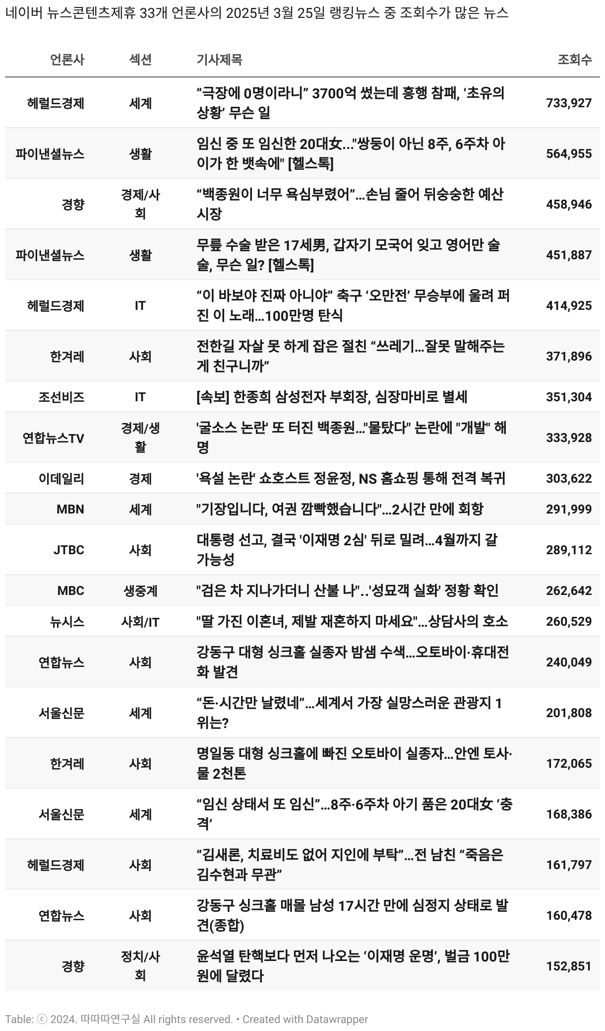 보도 시간대 기준 가장 흥한 기사 3건이 표시됩니다.