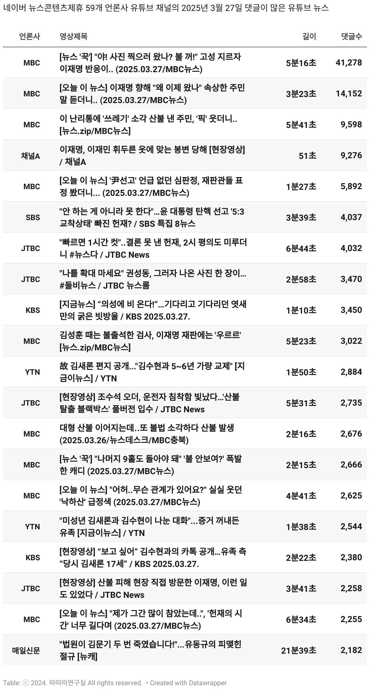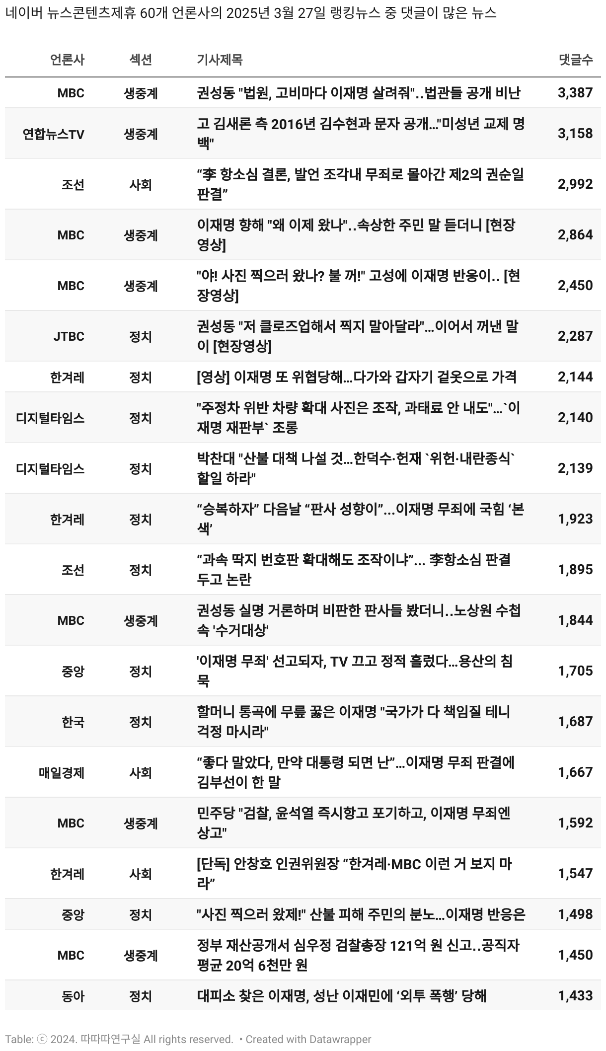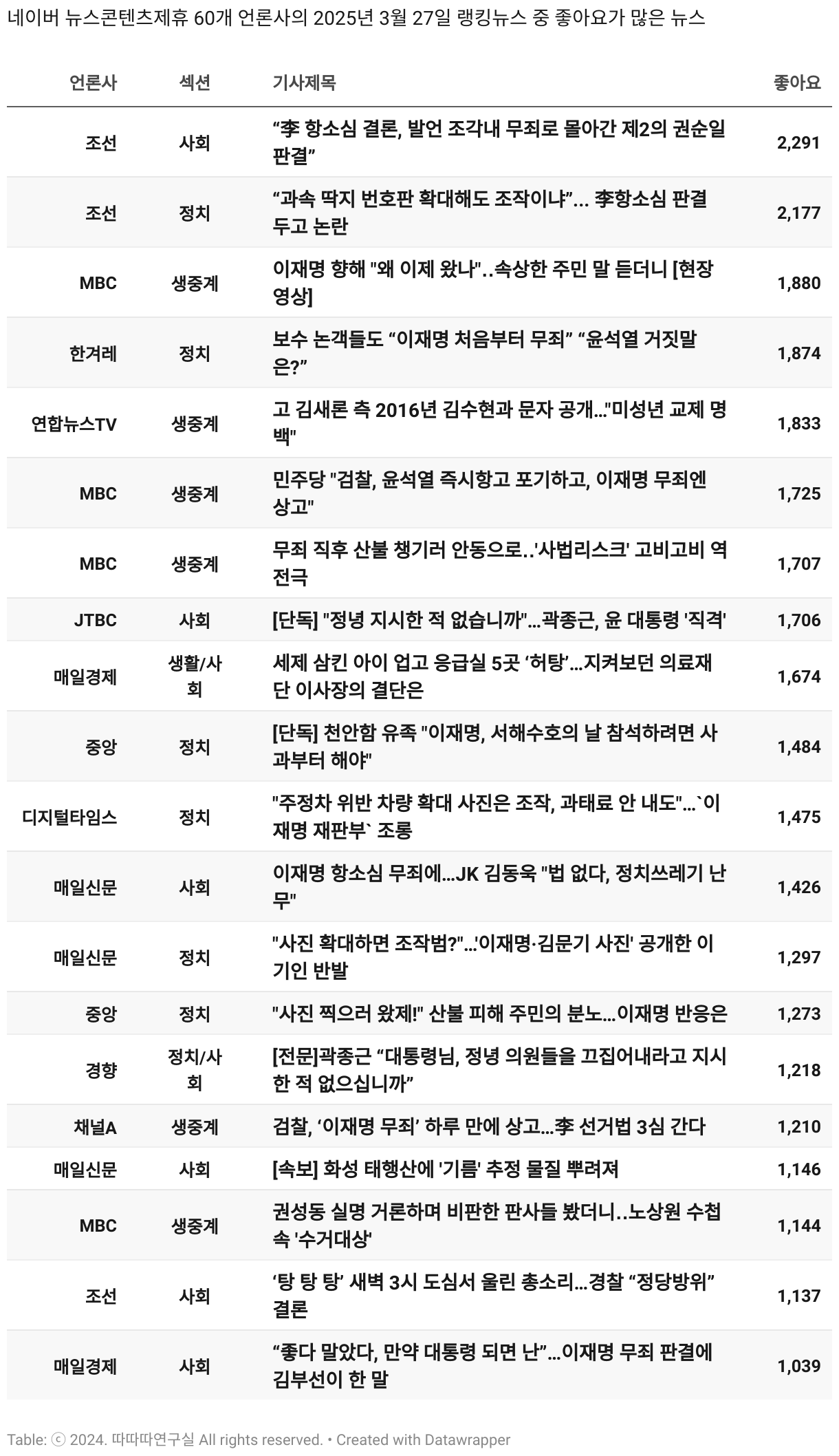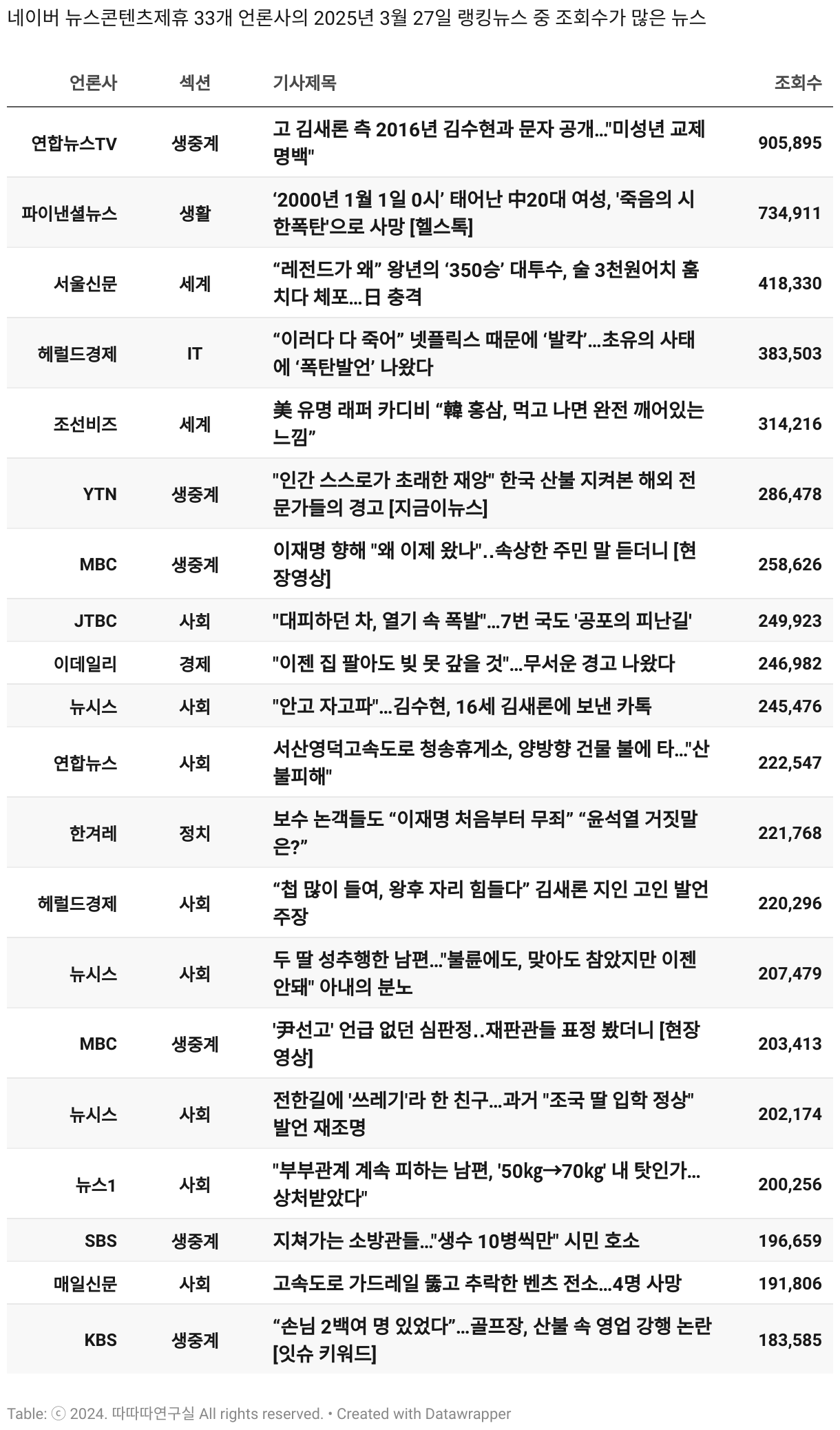 보도 시간대 기준 가장 흥한 기사 3건이 표시됩니다.