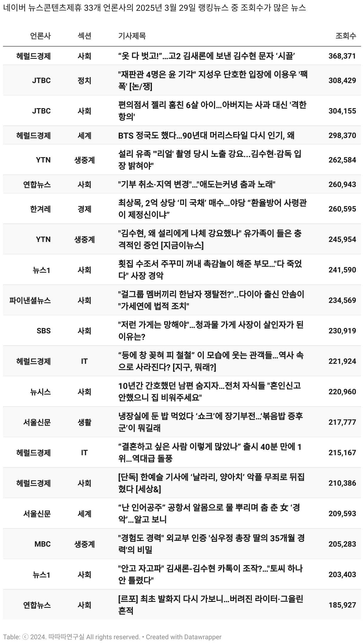 보도 시간대 기준 가장 흥한 기사 3건이 표시됩니다.