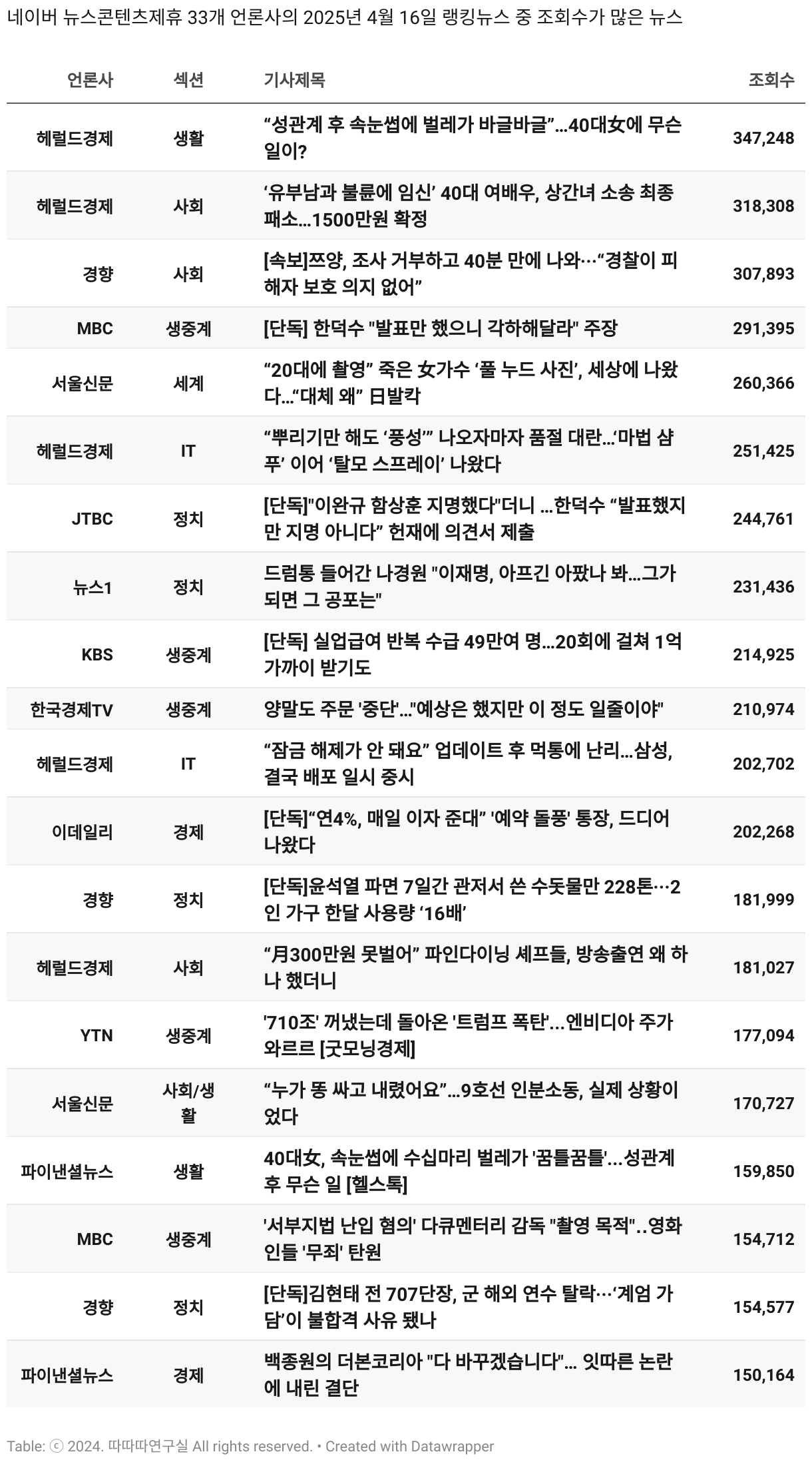 보도 시간대 기준 가장 흥한 기사 3건이 표시됩니다.