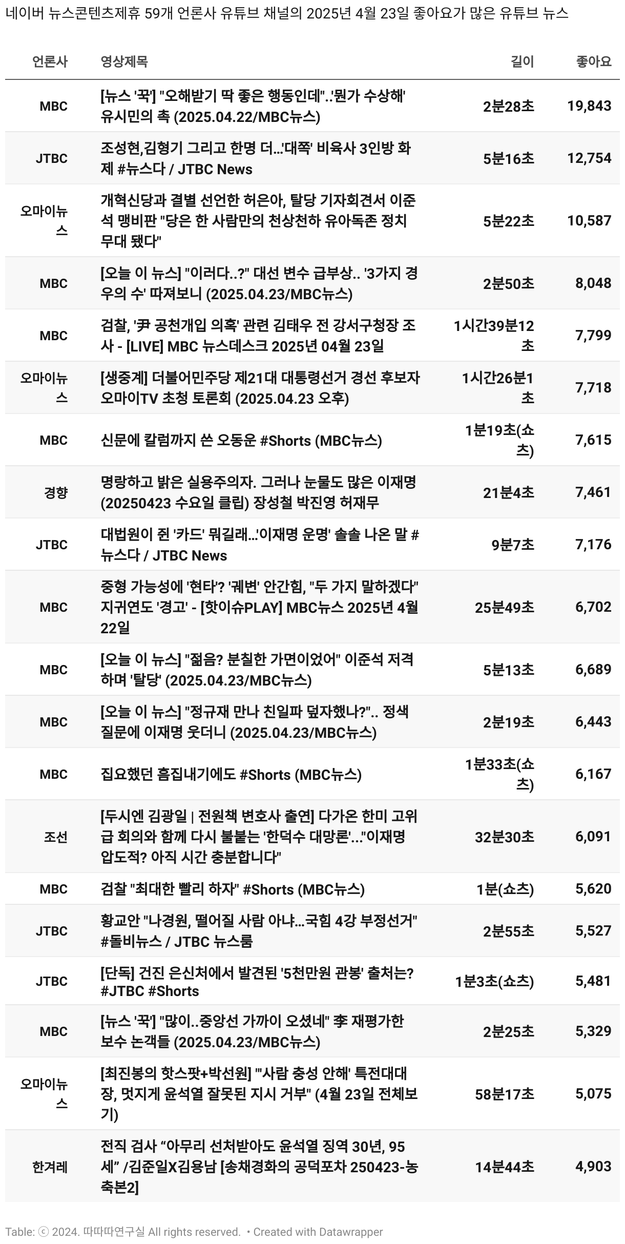 *데이터 수집 기간 : 2024년 6월 10일 *데이터 수집 대상 : 네이버 뉴스콘텐츠제휴 60개 언론사. 종합일간지 10개(경향신문, 국민일보, 동아일보, 문화일보, 서울신문, 세계일보, 조선일보, 중앙일보, 한겨레신문, 한국일보), 방송/통신사 14개(뉴스1, 뉴시스, 연합뉴스, 연합뉴스TV, 채널A, 한국경제TV, JTBC, KBS, MBC, MBN, SBS, SBS BIZ, TV조선, YTN), 경제지 11개(매일경제, 머니투데이, 비즈워치, 서울경제, 아시아경제, 이데일리, 조선비즈, 조세일보, 파이낸셜뉴스, 한국경제(유튜브제외), 헤럴드경제) 인터넷 8개(노컷뉴스, 더팩트, 데일리안, 머니S, 미디어오늘, 아이뉴스24, 오마이뉴스, 프레시안), IT 5개(디지털데일리,디지털타임스, 블로터, 전자신문, 지디넷코리아), 지역 12개(강원도민일보, 강원일보, 경기일보, 국제신문, 대구MBC, 대전일보, 매일신문, 부산일보, 전주MBC, CJB청주방송, JIBS, kbc광주방송)