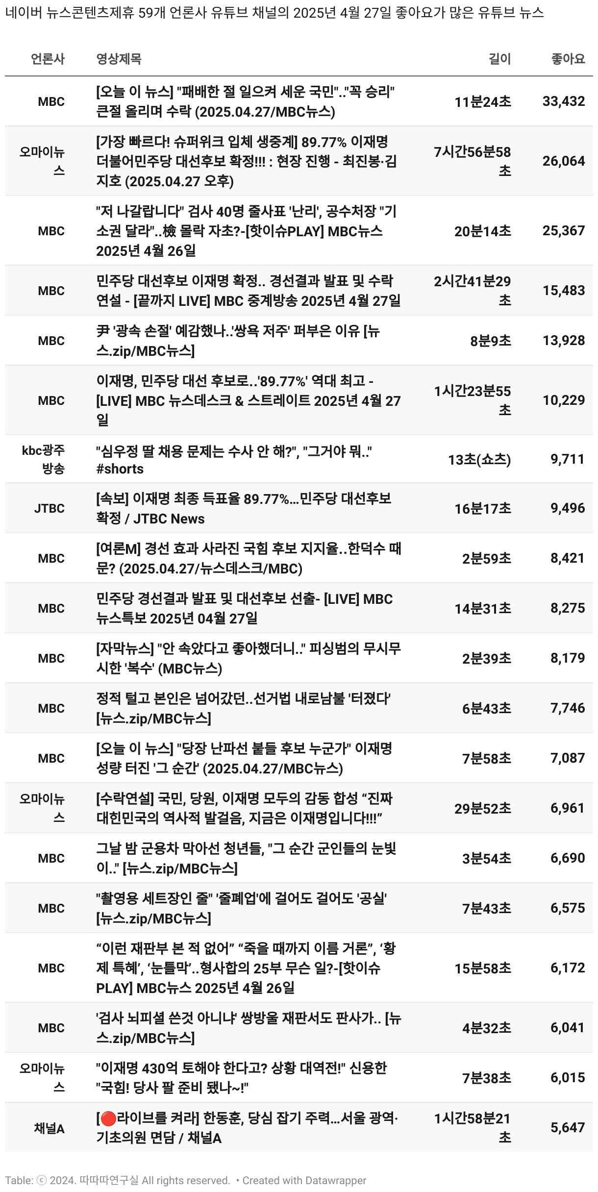 *데이터 수집 기간 : 2024년 6월 10일 *데이터 수집 대상 : 네이버 뉴스콘텐츠제휴 60개 언론사. 종합일간지 10개(경향신문, 국민일보, 동아일보, 문화일보, 서울신문, 세계일보, 조선일보, 중앙일보, 한겨레신문, 한국일보), 방송/통신사 14개(뉴스1, 뉴시스, 연합뉴스, 연합뉴스TV, 채널A, 한국경제TV, JTBC, KBS, MBC, MBN, SBS, SBS BIZ, TV조선, YTN), 경제지 11개(매일경제, 머니투데이, 비즈워치, 서울경제, 아시아경제, 이데일리, 조선비즈, 조세일보, 파이낸셜뉴스, 한국경제(유튜브제외), 헤럴드경제) 인터넷 8개(노컷뉴스, 더팩트, 데일리안, 머니S, 미디어오늘, 아이뉴스24, 오마이뉴스, 프레시안), IT 5개(디지털데일리,디지털타임스, 블로터, 전자신문, 지디넷코리아), 지역 12개(강원도민일보, 강원일보, 경기일보, 국제신문, 대구MBC, 대전일보, 매일신문, 부산일보, 전주MBC, CJB청주방송, JIBS, kbc광주방송)