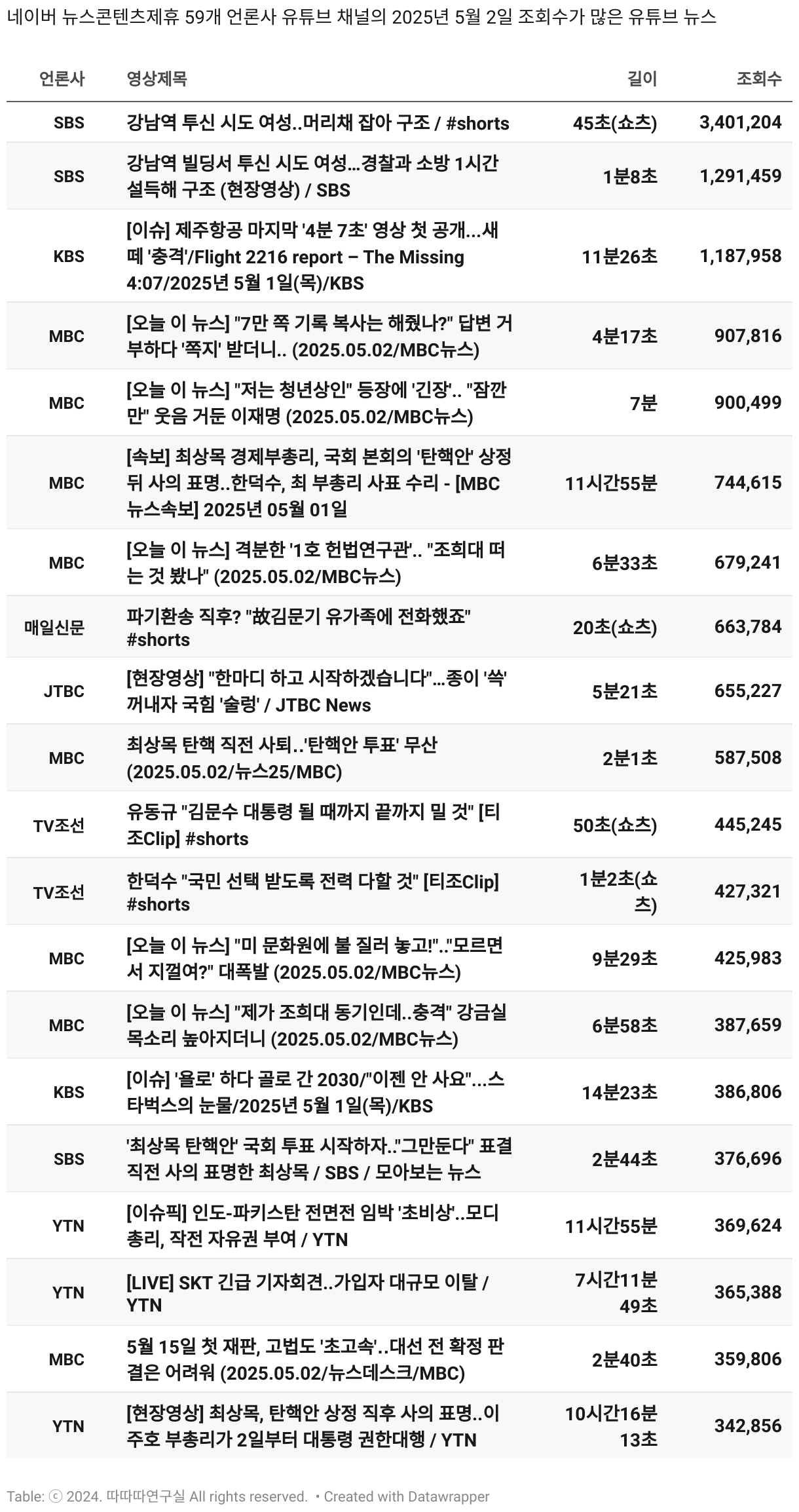 보도 시간대 기준 가장 흥한 기사 3건이 표시됩니다.