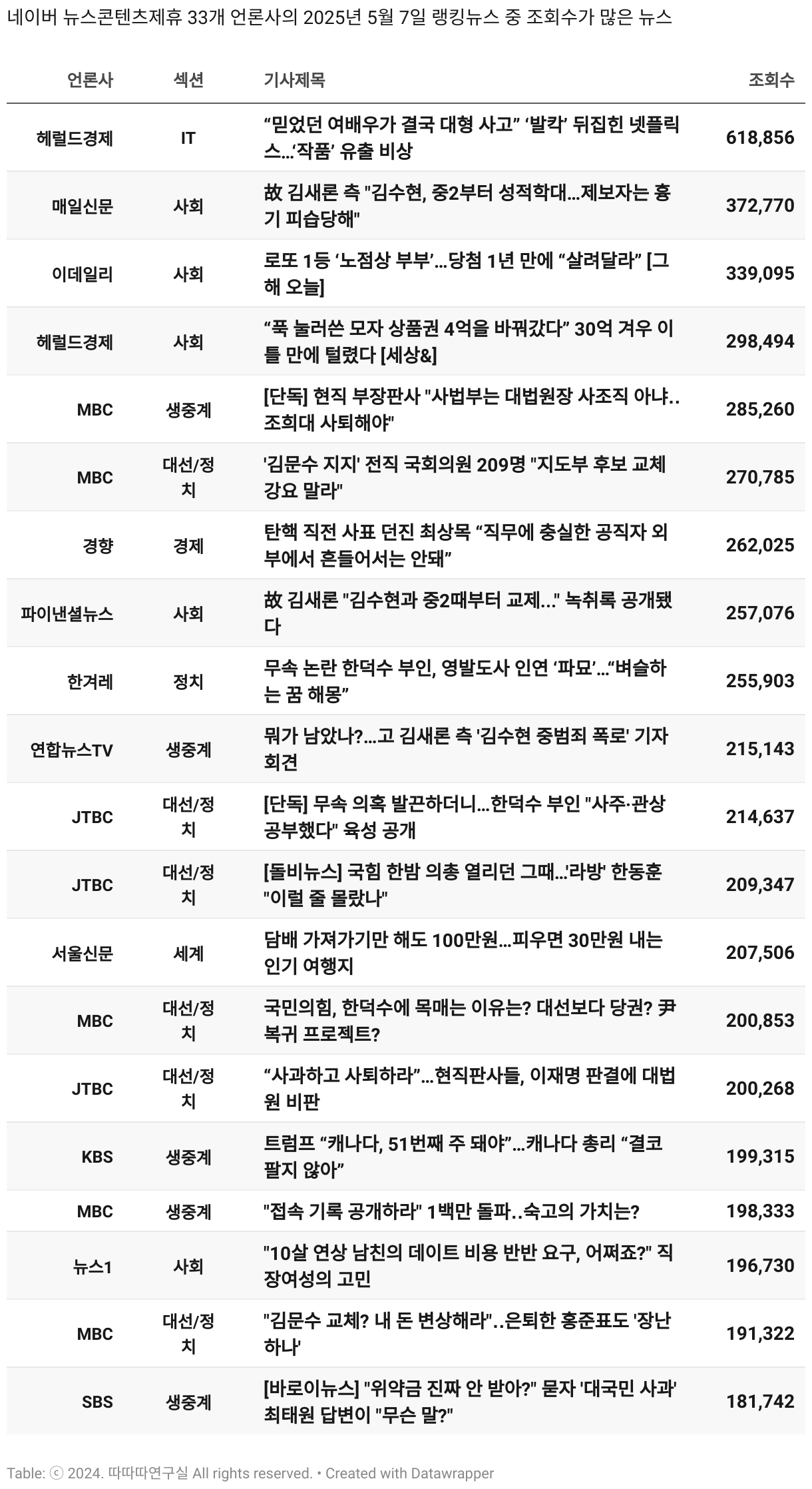 보도 시간대 기준 가장 흥한 기사 3건이 표시됩니다.
