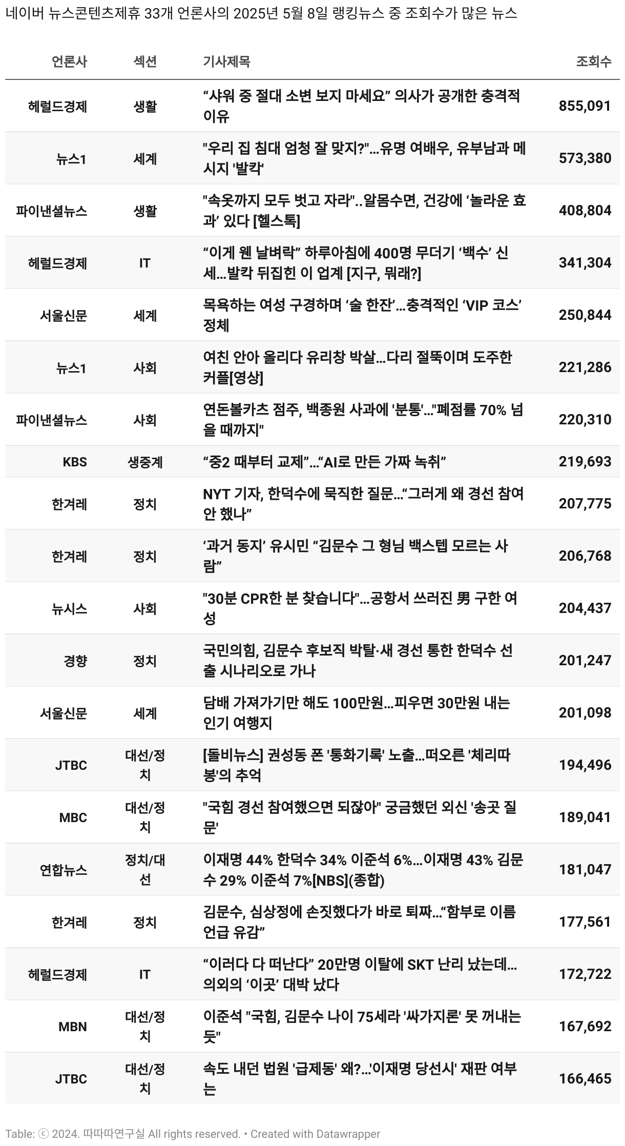 보도 시간대 기준 가장 흥한 기사 3건이 표시됩니다.