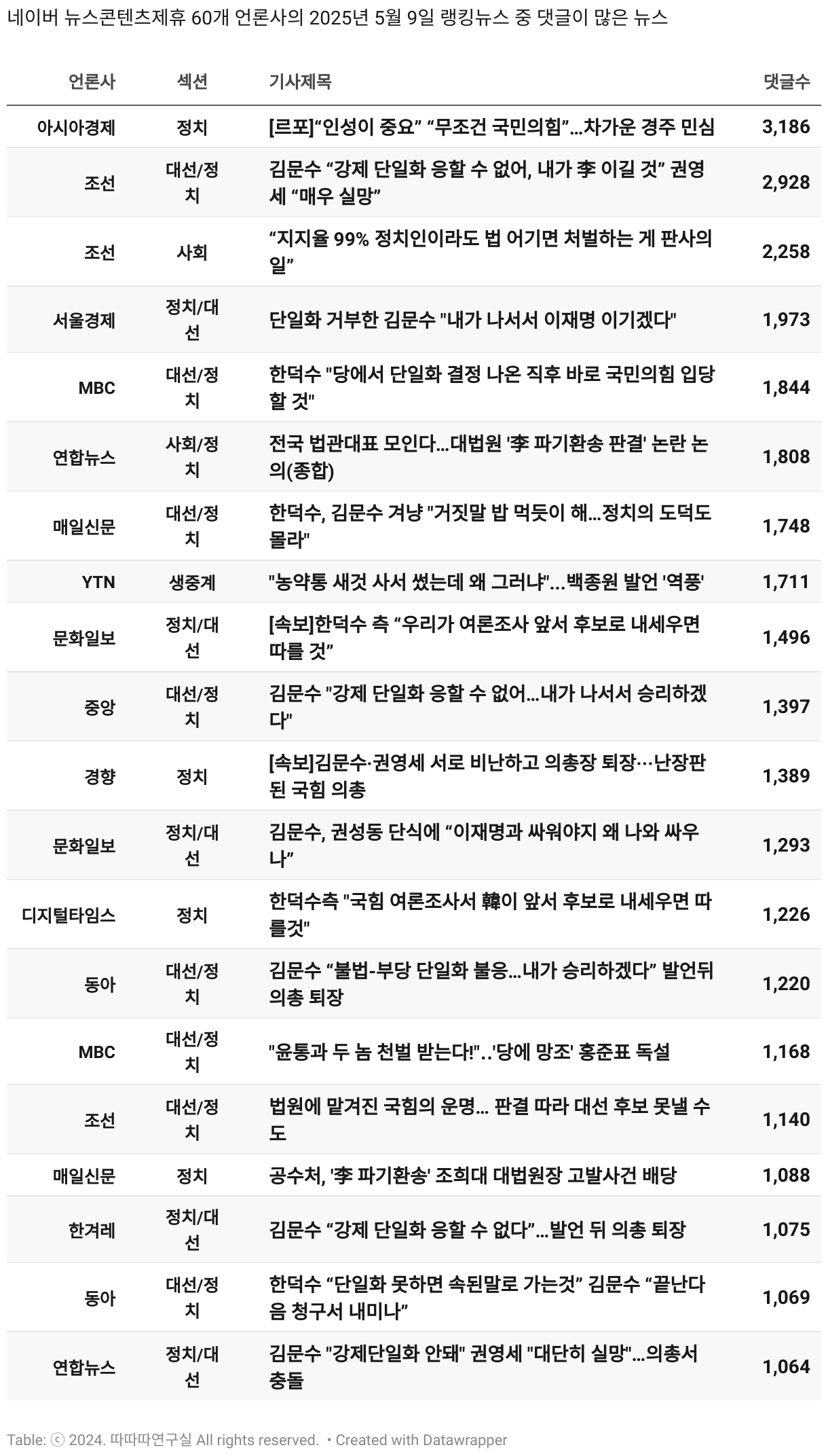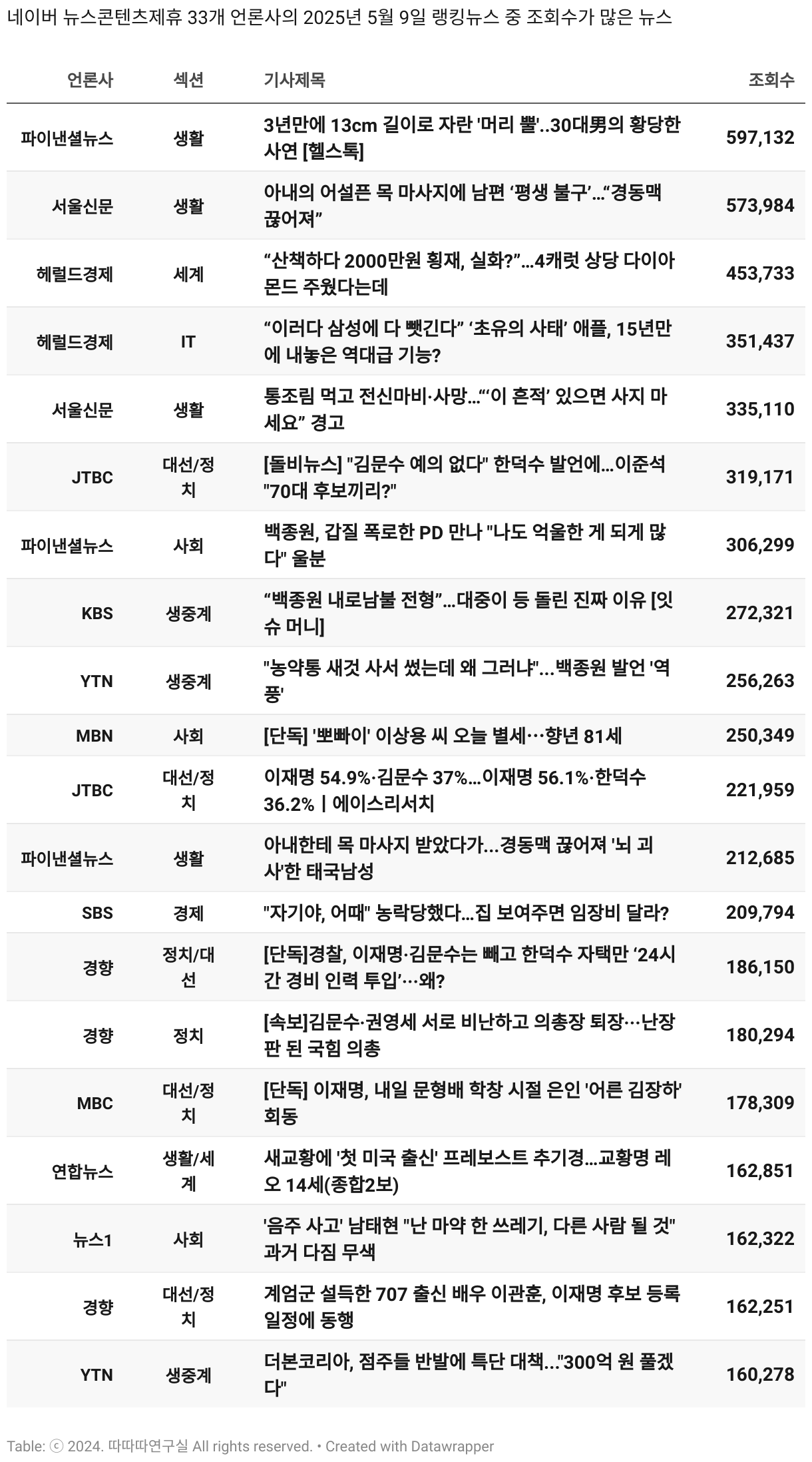 보도 시간대 기준 가장 흥한 기사 3건이 표시됩니다.